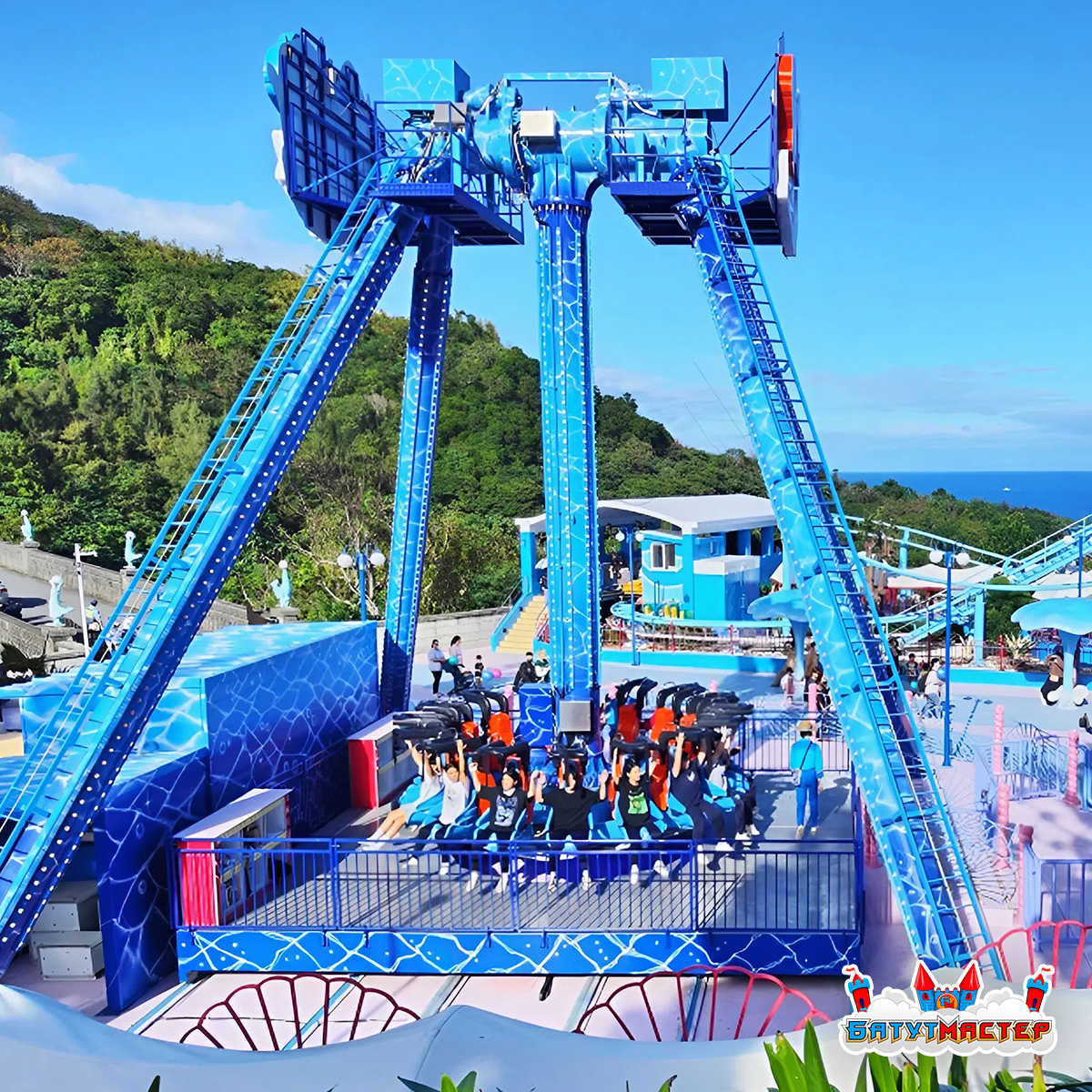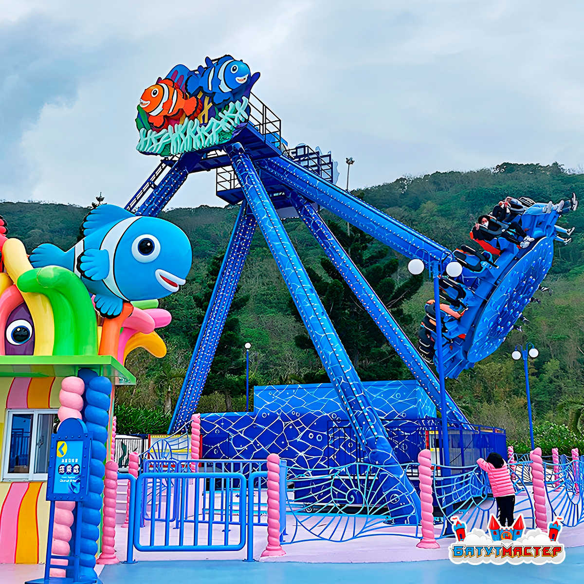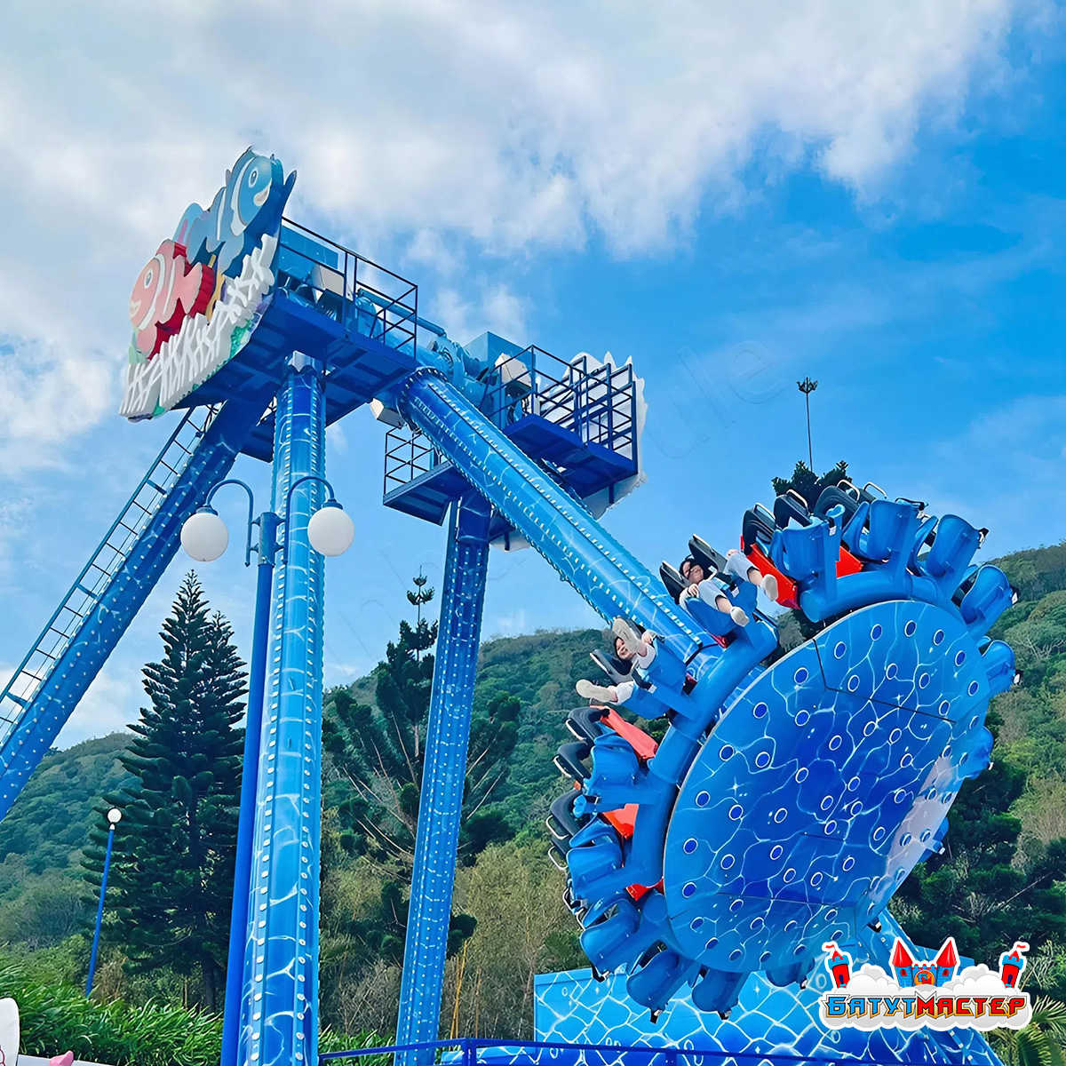 Аттракцион тарелка «Морской Прилив» — это масштабная динамическая конструкция высотой 19 метров и габаритами 19x15x15 м, которая формирует визуальную доминанту любой развлекательной территории. Морская тематика с яркими декоративными элементами в виде подводных персонажей создаёт запоминающийся образ и усиливает эмоциональное вовлечение гостей.
