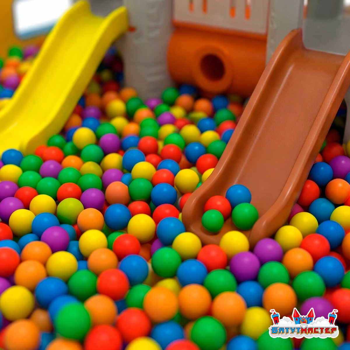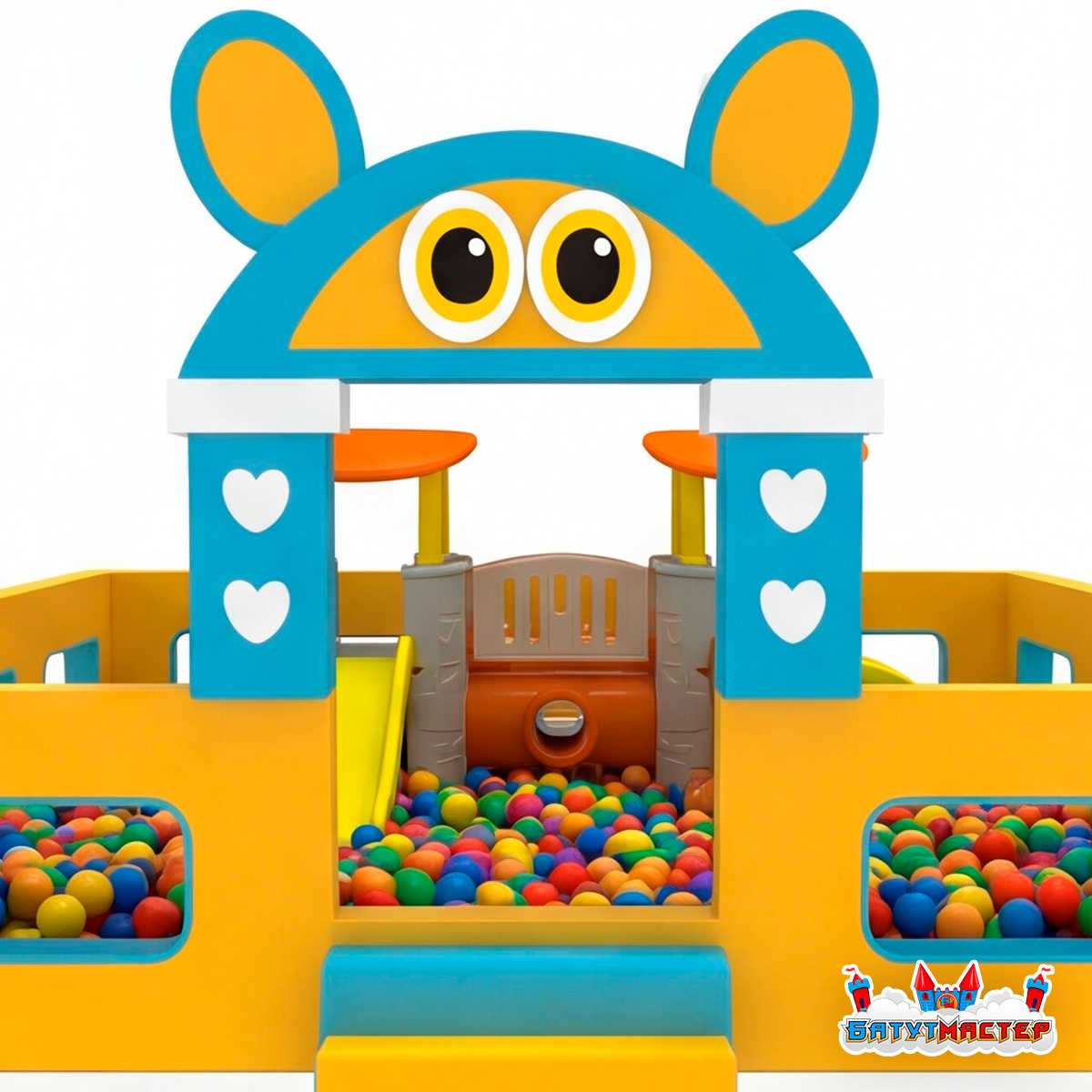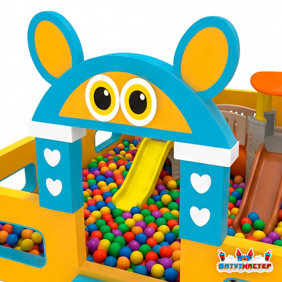 Внутри «Весёлый Мышонок» — это не просто периметр с шариками, а целый игровой маршрут. Игровой комплекс с двумя горками формирует интерес у детей. Ребёнок может подняться, скатиться, нырнуть в шарики, снова подняться — и каждый раз получать новые впечатления.