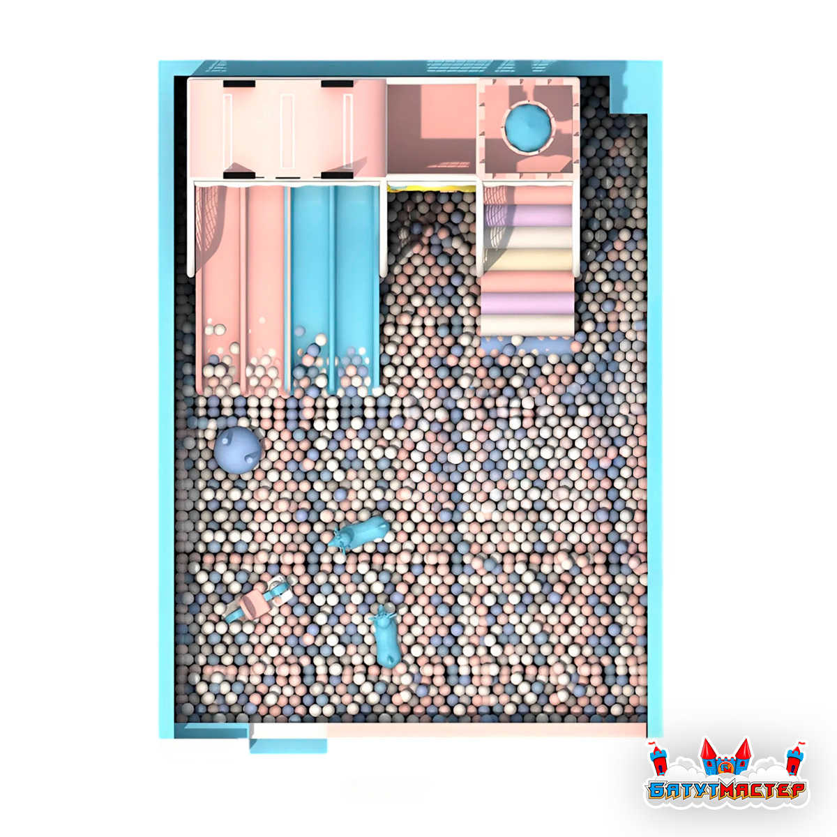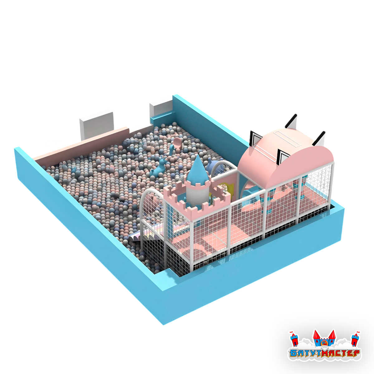 Просторная площадь позволяет одновременно играть нескольким детям, не мешая друг другу. Внутри предусмотрены безопасные горки, мягкие переходы и объёмная зона, заполненная тысячами пластиковых шариков нежных пастельных оттенков.