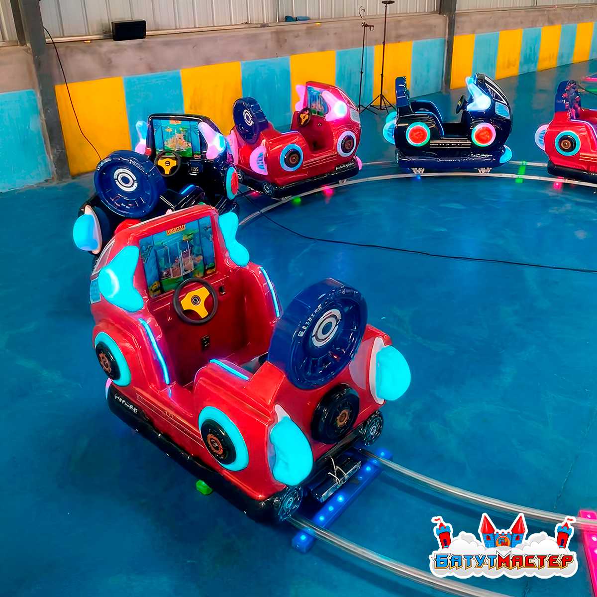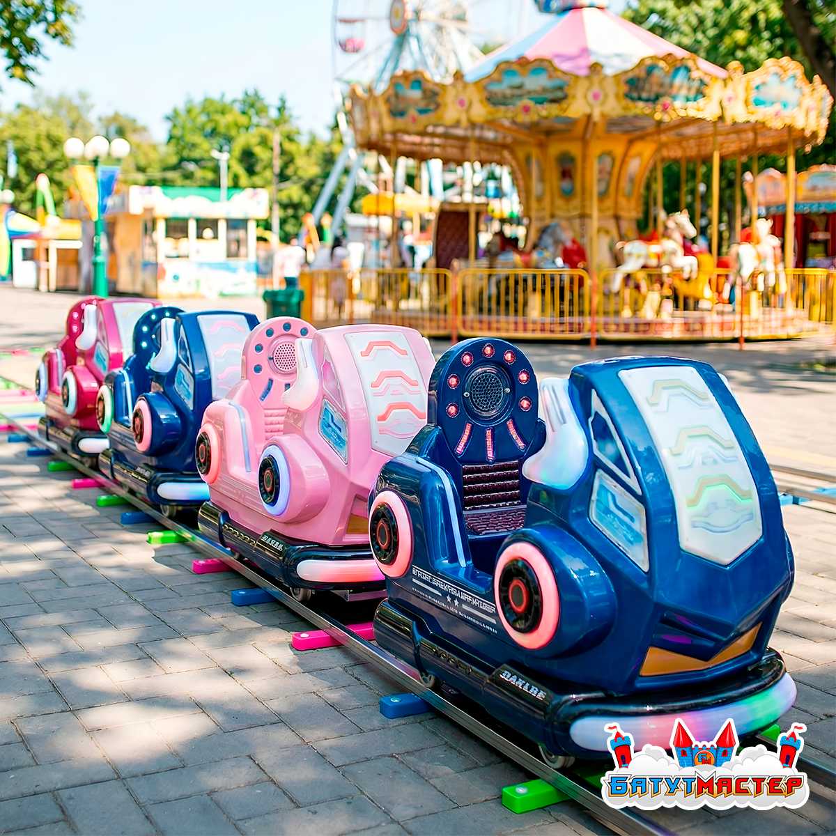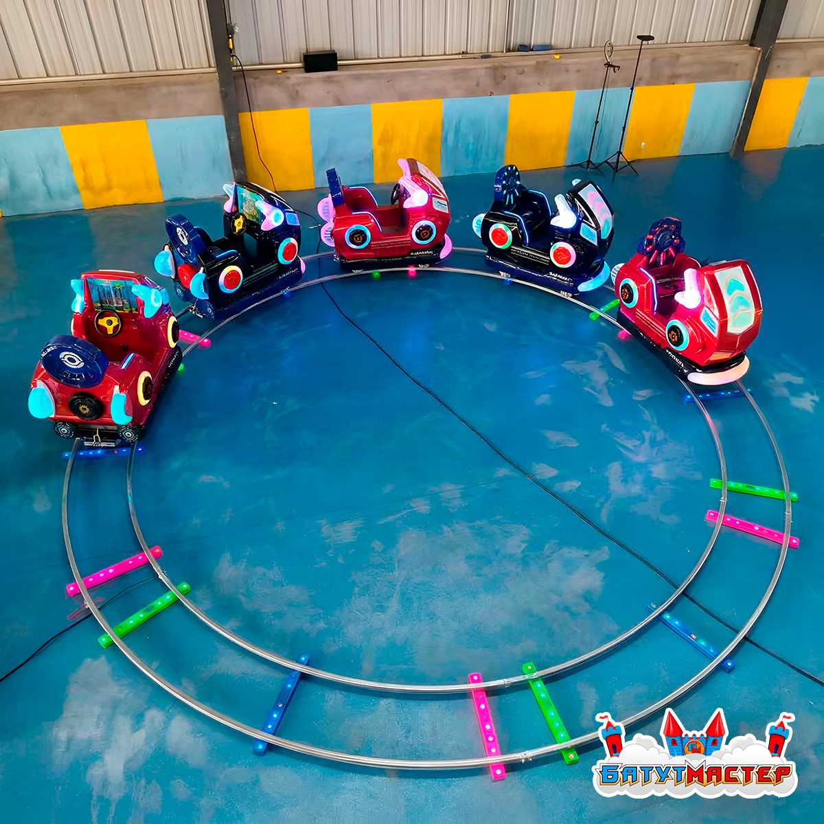 Движение осуществляется по фиксированному рельсовому маршруту, что обеспечивает стабильность, плавность и безопасность во время эксплуатации. Компактная конфигурация делает этот аттракцион отличным решением как для открытых площадок, так и для размещения внутри помещений.