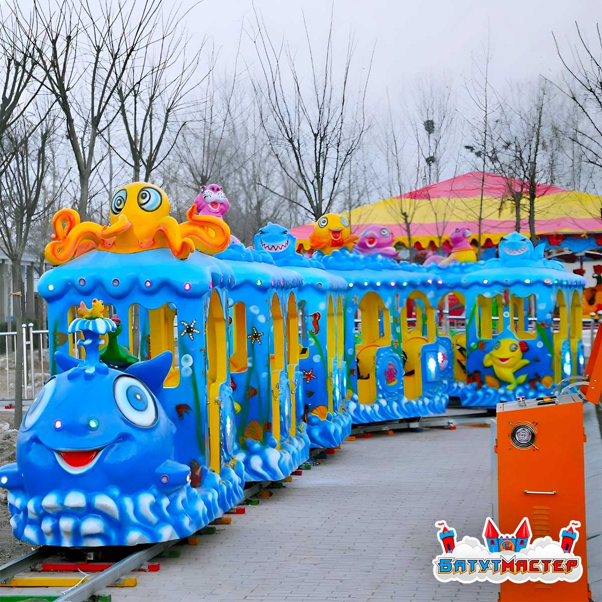 Рельсовый поезд (железная дорога) в морской тематике — это аттракцион, который: