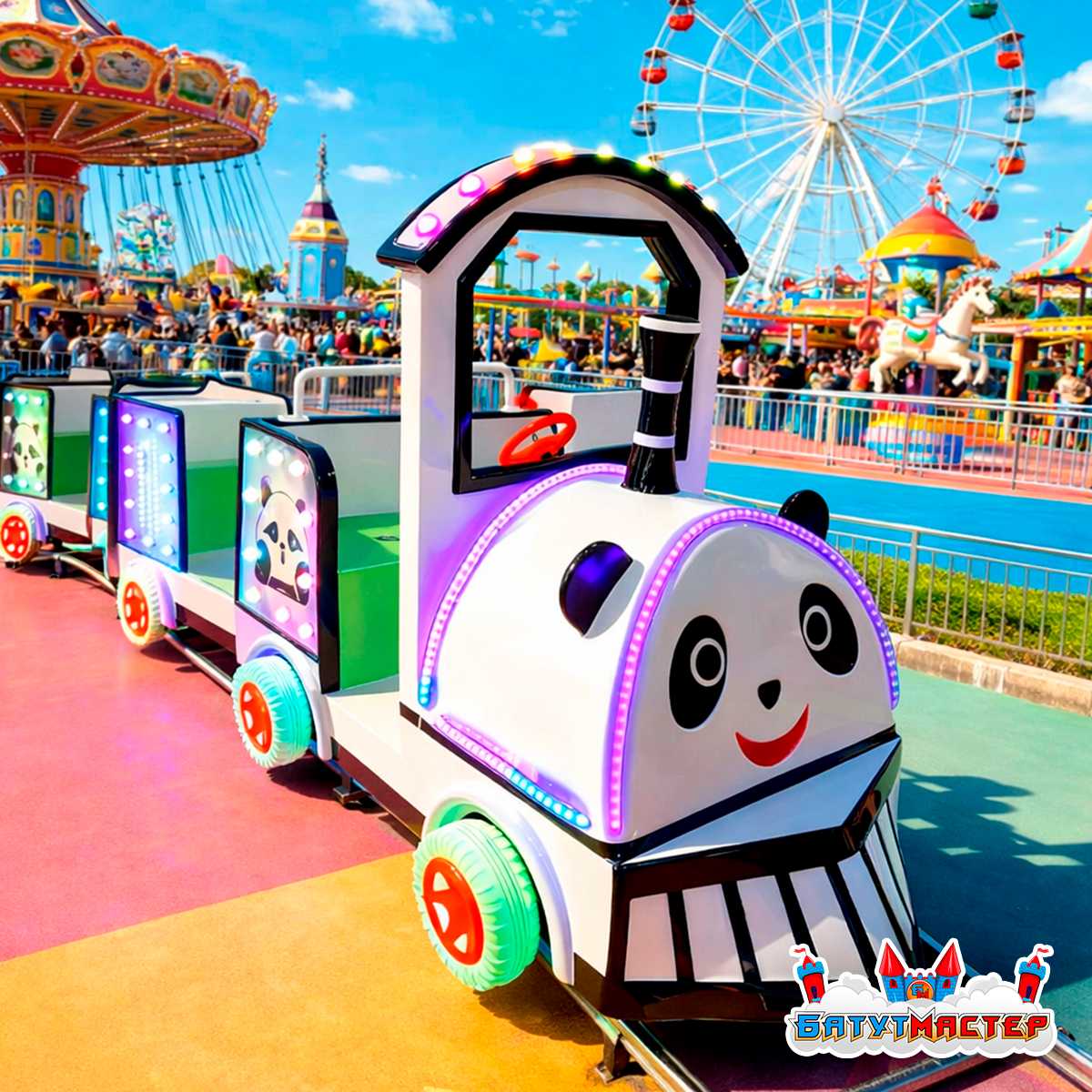 Рельсовый поезд «Панда-топ-топ» — это готовое решение для бизнеса, которое сочетает яркий дизайн, оптимальную вместимость и устойчивый коммерческий потенциал. Он помогает выделиться, привлекать гостей и создавать атмосферу праздника каждый день 🚂