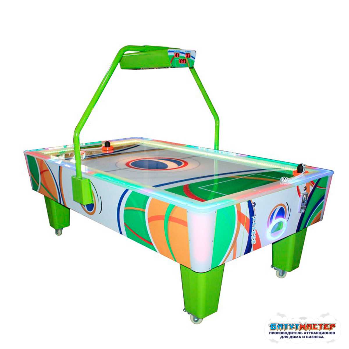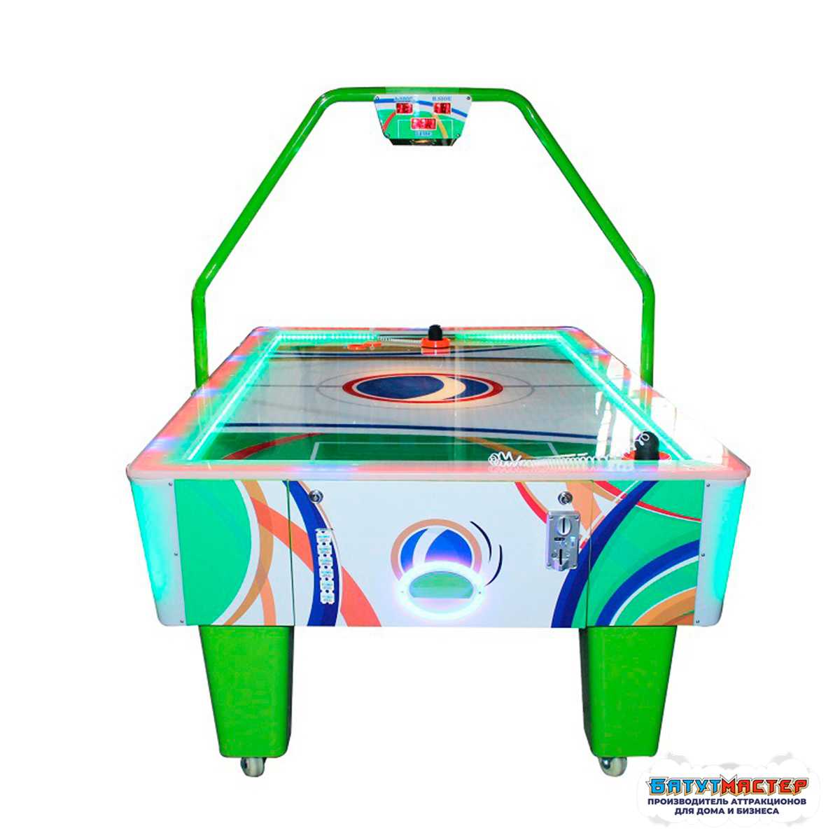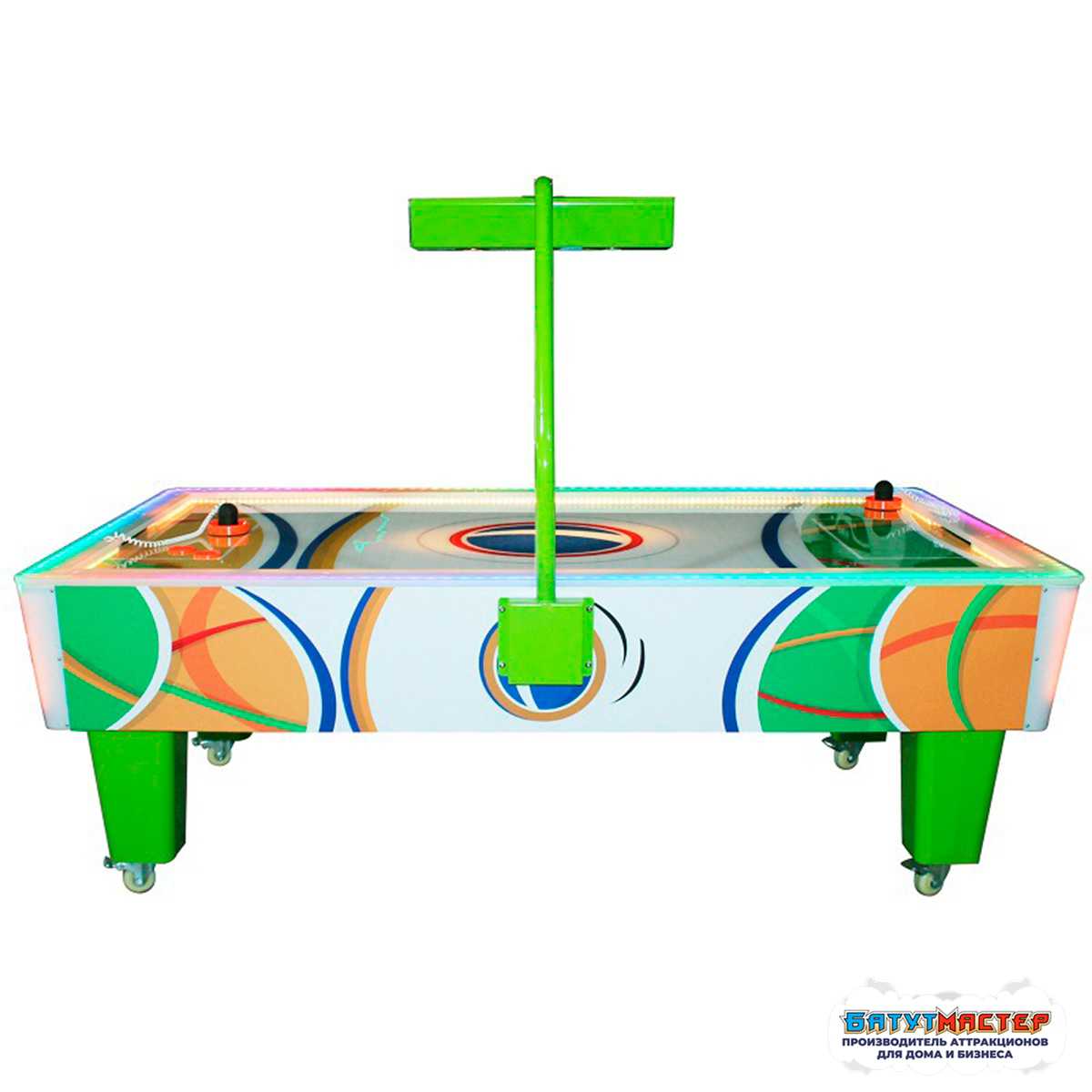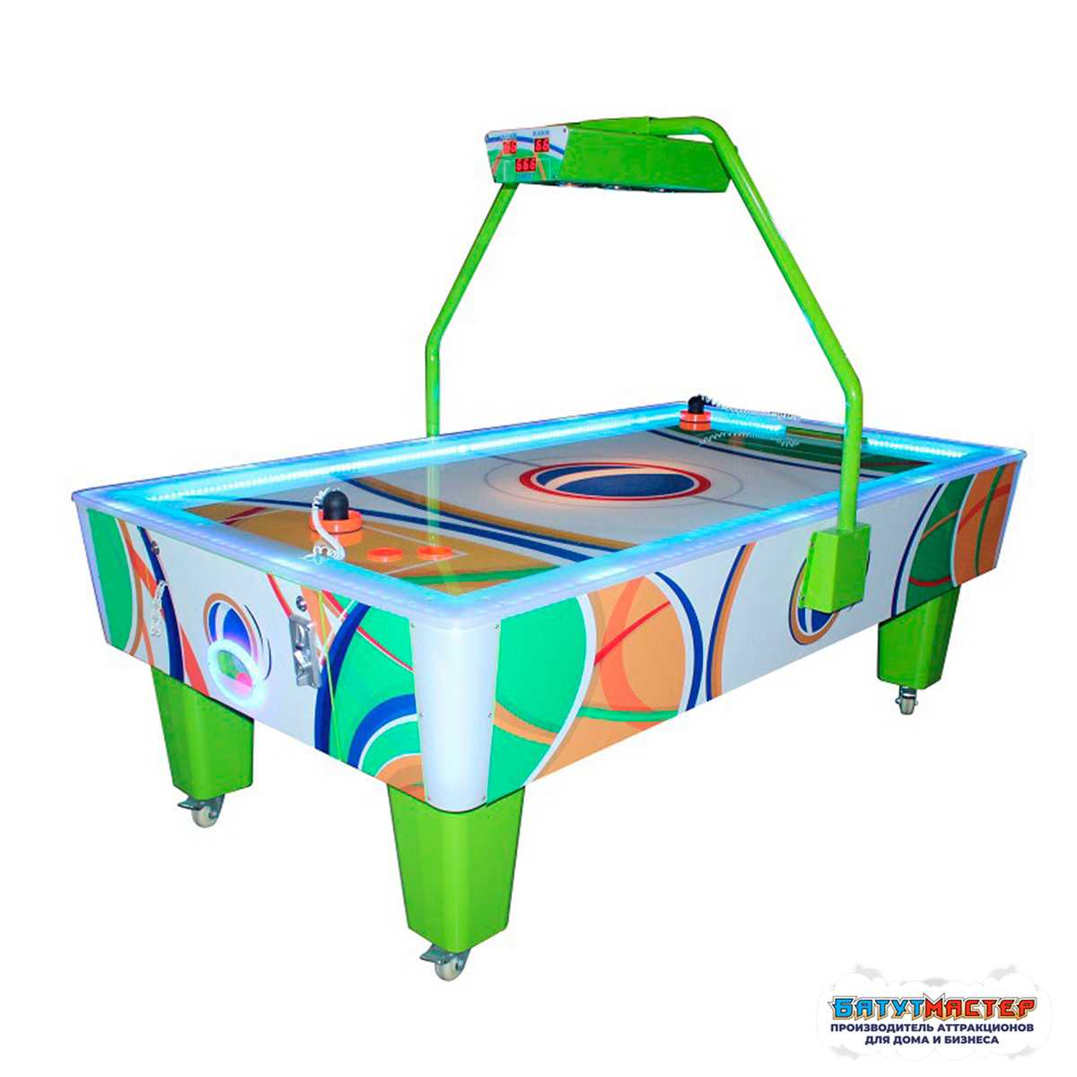 Игровое поле оснащено системой подачи воздуха, создающей равномерную воздушную подушку. Благодаря этому шайба легко и быстро скользит по поверхности, а партии проходят в активном темпе. Дети мгновенно вовлекаются в процесс: скорость, азарт, стремление забить гол — всё это формирует яркие эмоции и желание сыграть ещё раз.