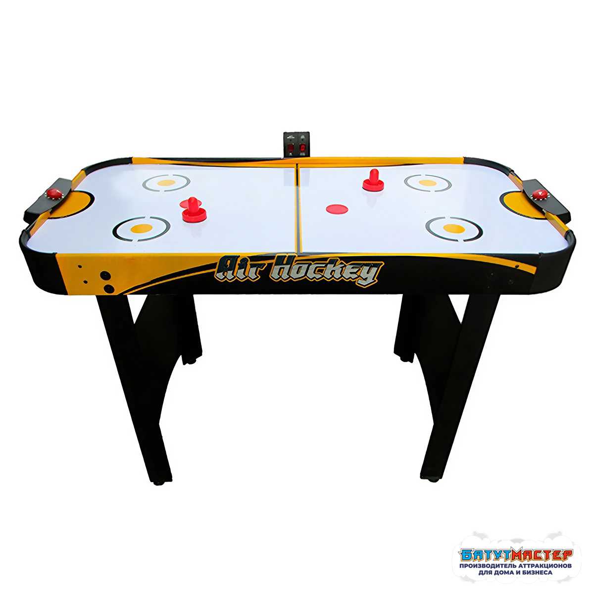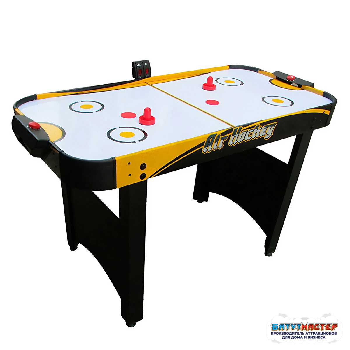 Игровое поле выполнено в классическом стиле и оснащено системой подачи воздуха. Через микроотверстия в поверхности создаётся воздушная подушка, благодаря которой шайба легко и быстро скользит по столу. Это обеспечивает плавность движения и динамичность каждой партии.