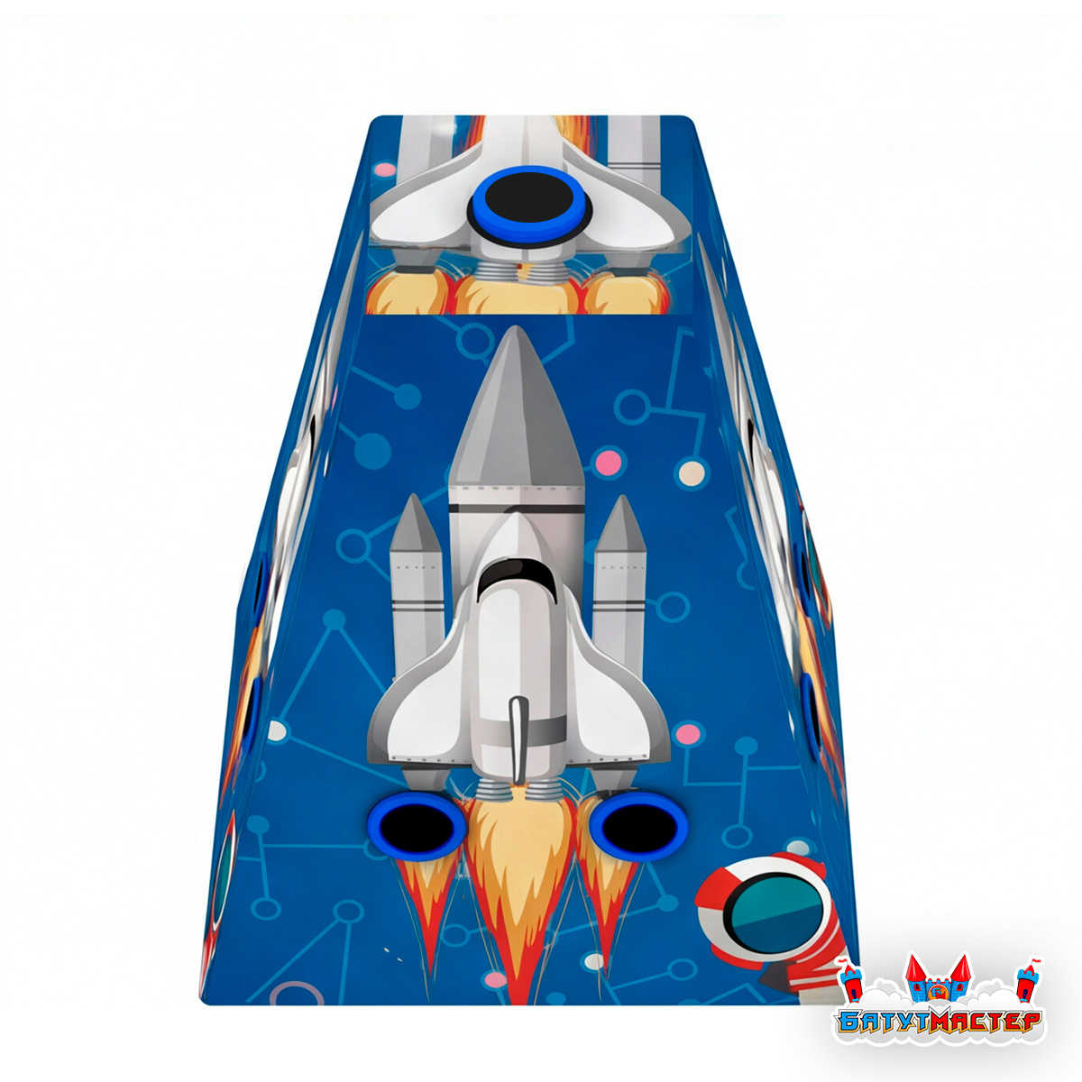 Космическая тематика оформления переносит детей в увлекательное межгалактическое путешествие. Стартующий шаттл, отважный астронавт, загадочные орбиты планет на глубоком синем фоне — каждая деталь продумана так, чтобы разжечь детское воображение и подарить незабываемые эмоции.