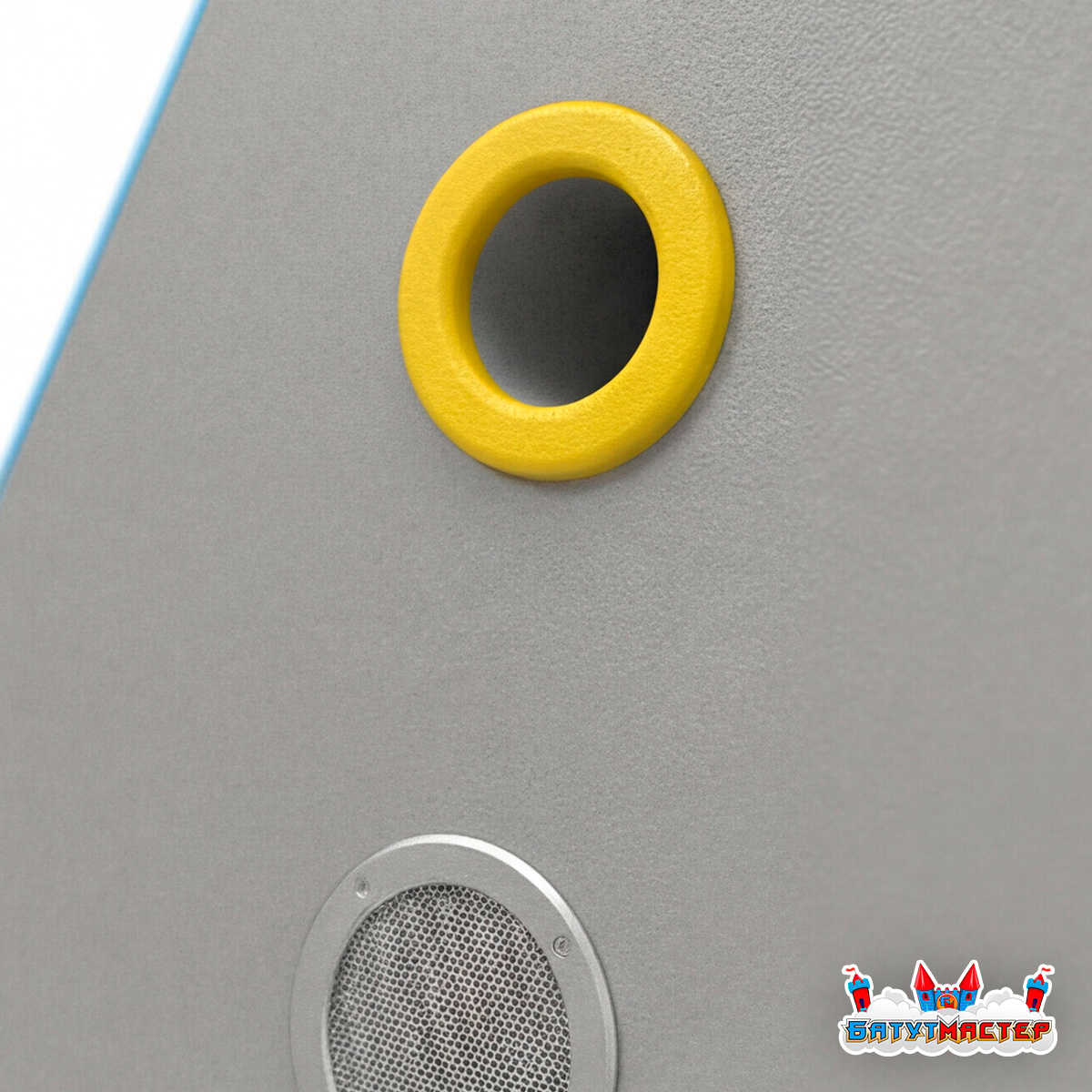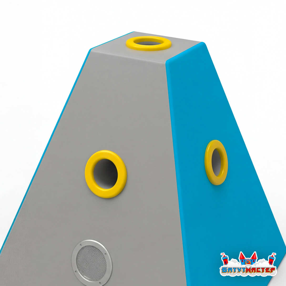 Воздушный фонтан изготавливается в форме устойчивой пирамиды с габаритами и органично вписывается в пространство большинства стандартных сухих бассейнов. Яркие воздушные насадки с жёлтыми кольцами расположены на нескольких гранях конструкции, создавая направленные потоки воздуха, которые поднимают шарики на разную высоту и заставляют их хаотично двигаться в пространстве.