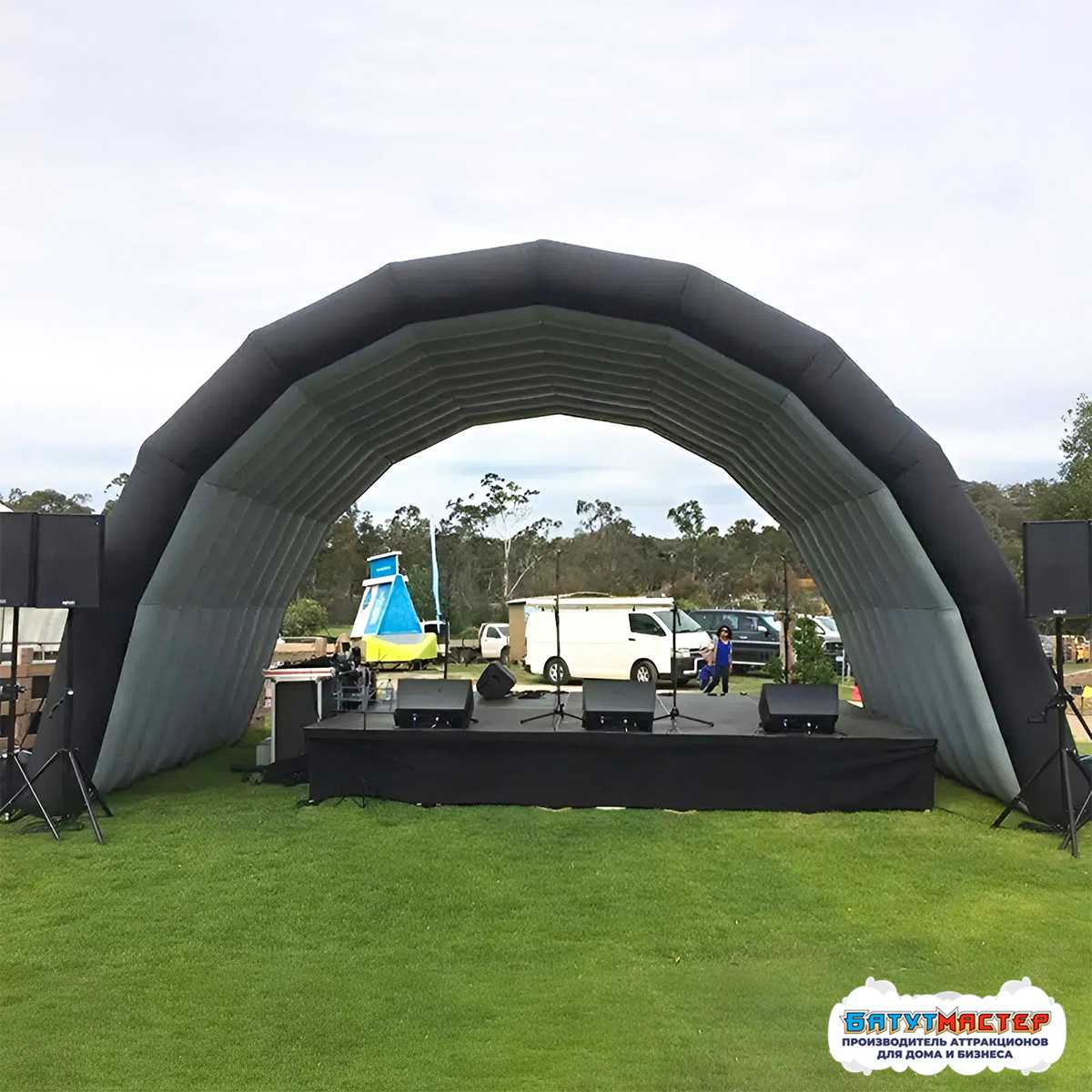 Одно из ключевых преимуществ — простота развёртывания. Сцена подключается к электросети и принимает рабочую форму за счёт постоянного наддува.