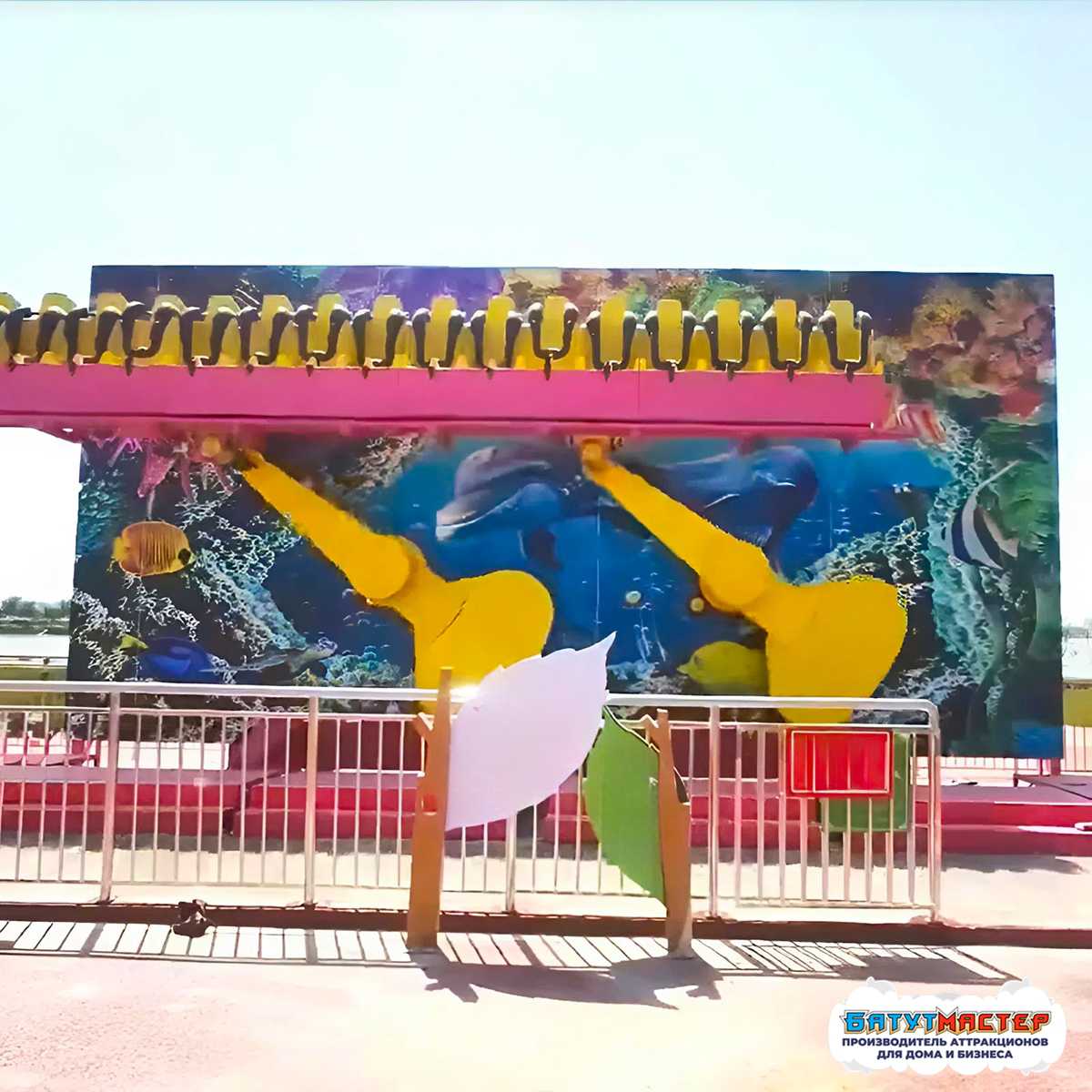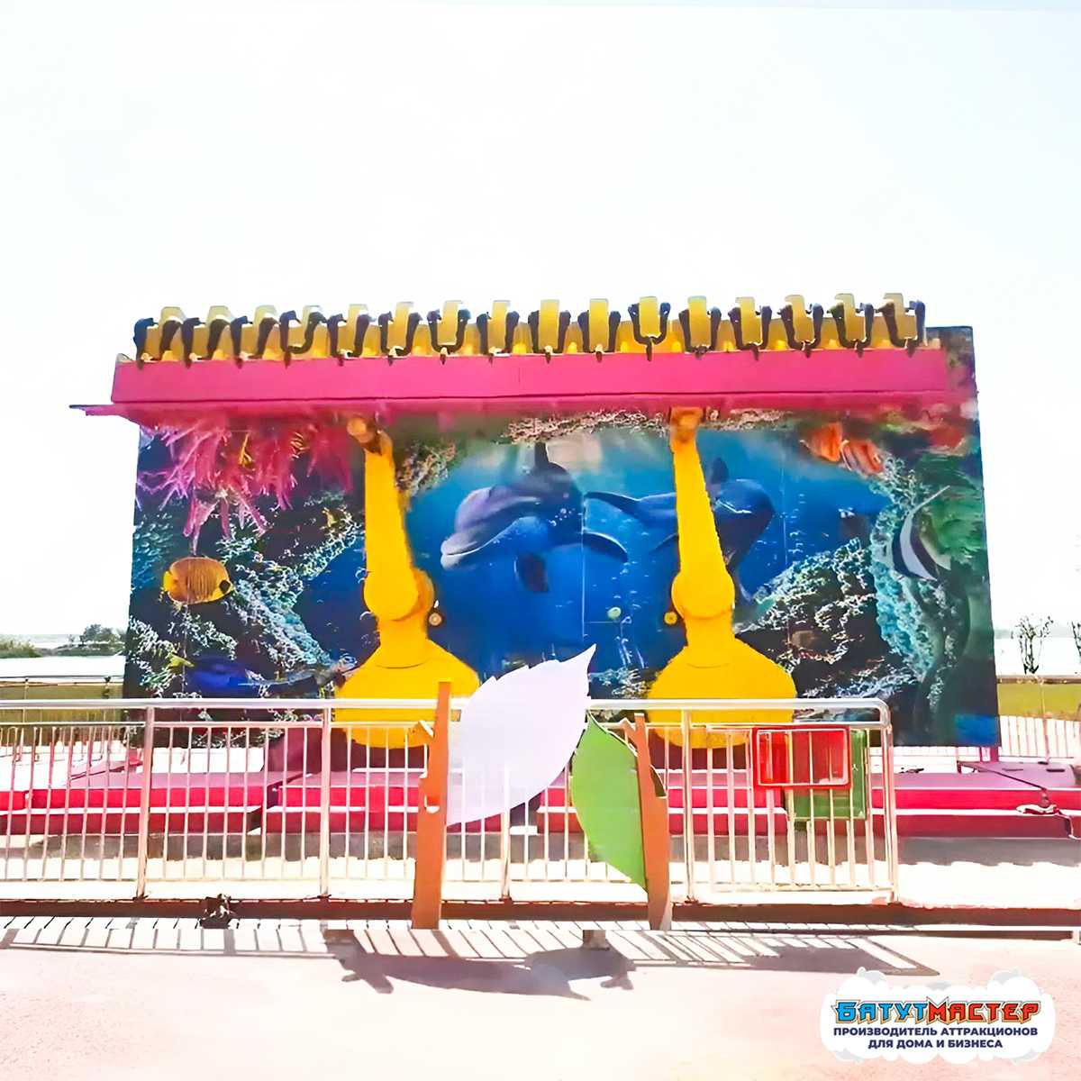 Представьте: ваши гости садятся на скамейку, и вдруг — они уже не в парке развлечений, а в самом сердце океана! Вокруг них плавают грациозные дельфины, мерцают разноцветные кораллы, а экзотические рыбки приглашают в незабываемое путешествие. Аттракцион «Тайна океана» — это не просто катание, это настоящий портал в волшебный подводный мир, где каждый взмах скамейки дарит ощущение полёта над океанскими глубинами!