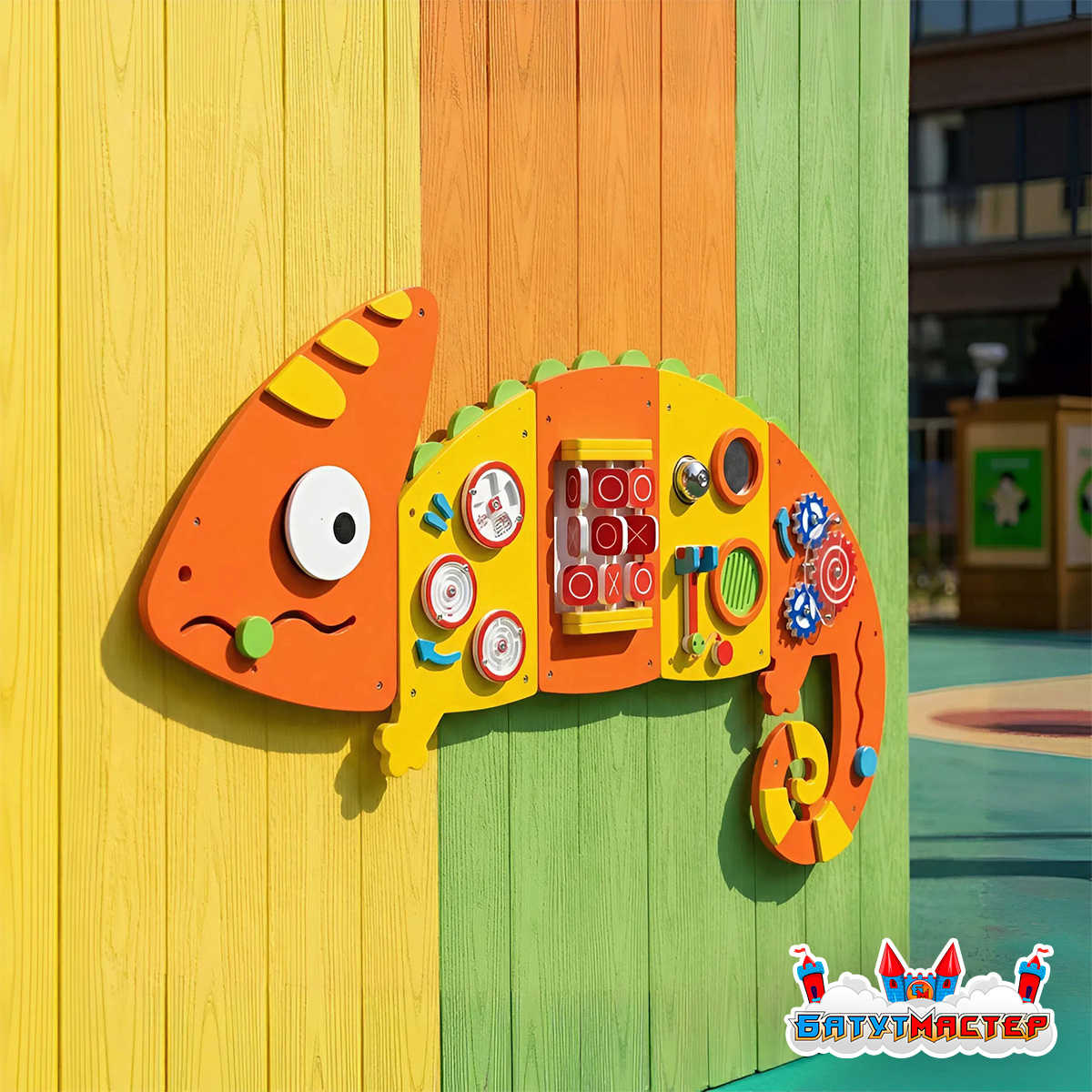 Представьте: в вашем детском центре появляется необычный житель — огромный Хамелеон, который приглашает малышей в увлекательное путешествие по миру тактильных ощущений и логических загадок. Этот яркий тропический друг не просто украшает пространство — он превращает каждое посещение вашего заведения в настоящее приключение, от которого невозможно оторваться!