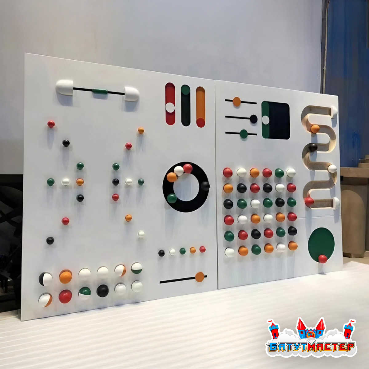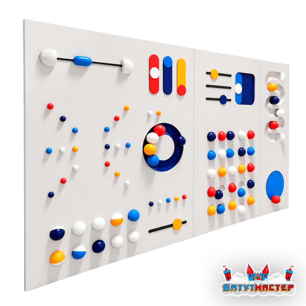 Представьте: ребёнок подходит к яркой панели, и его глаза загораются от восторга. Десятки разноцветных шариков, загадочные бегунки, вращающиеся кольца — всё это приглашает к исследованию. Интерактивная стена «Траектория» превращает обычную игровую зону в пространство бесконечных открытий, где каждое прикосновение дарит новые ощущения и эмоции.
