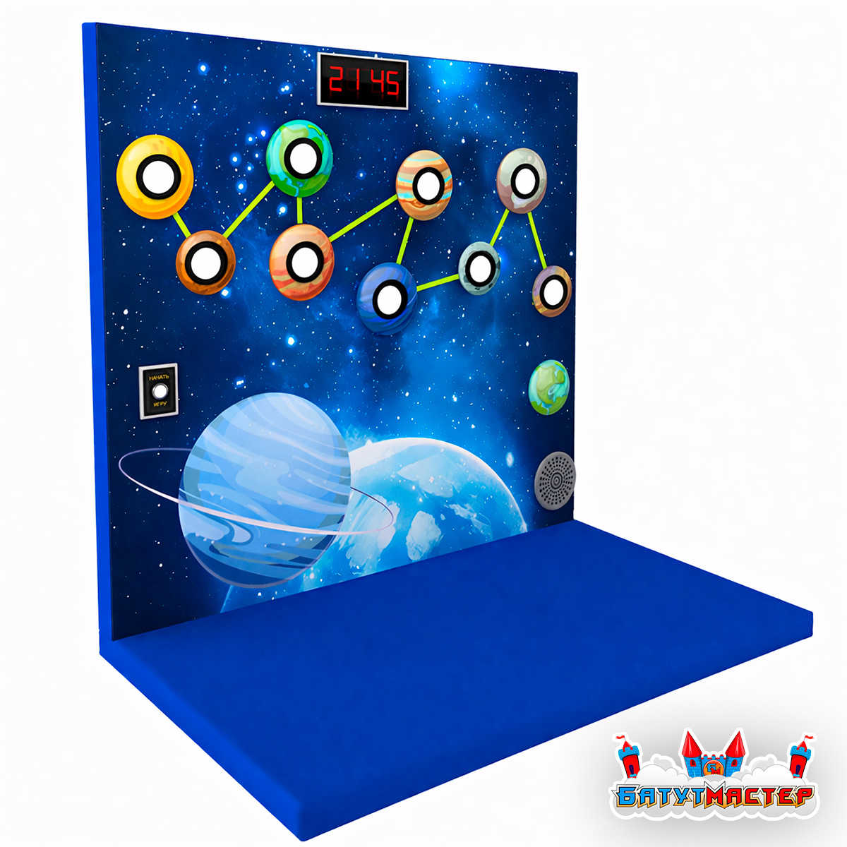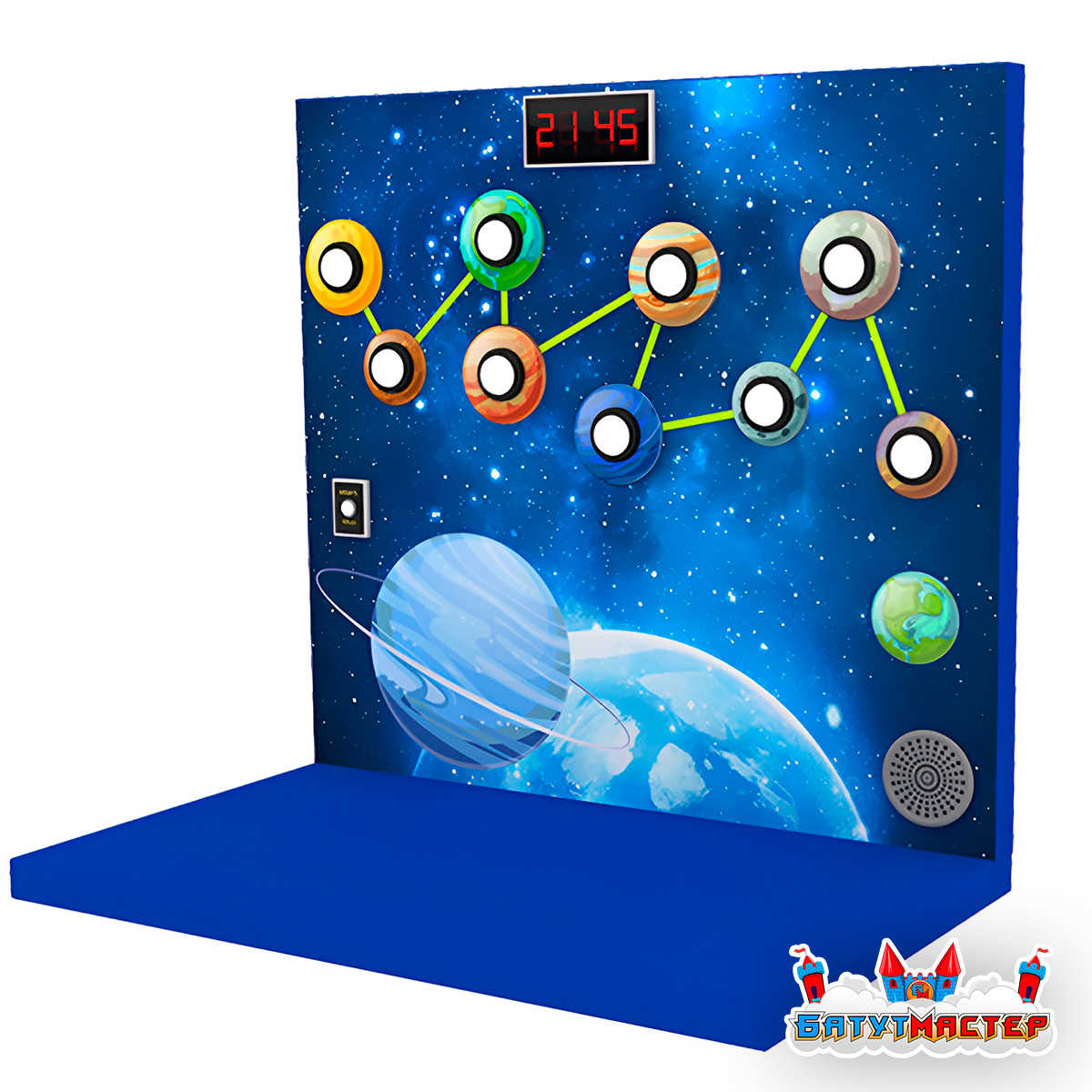 Представьте: ребёнок подходит к стене, нажимает кнопку «Начать игру» — и перед ним оживает целая галактика. 9 планет начинают загораться разноцветными огнями, приглашая в увлекательное соревнование на скорость и внимательность. Это не просто игра — это приключение, которое дети захотят повторять снова и снова.