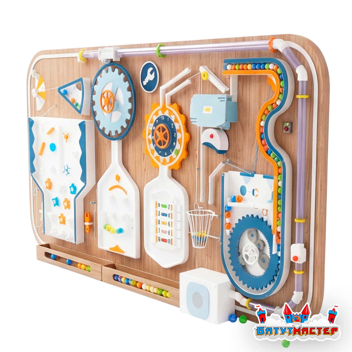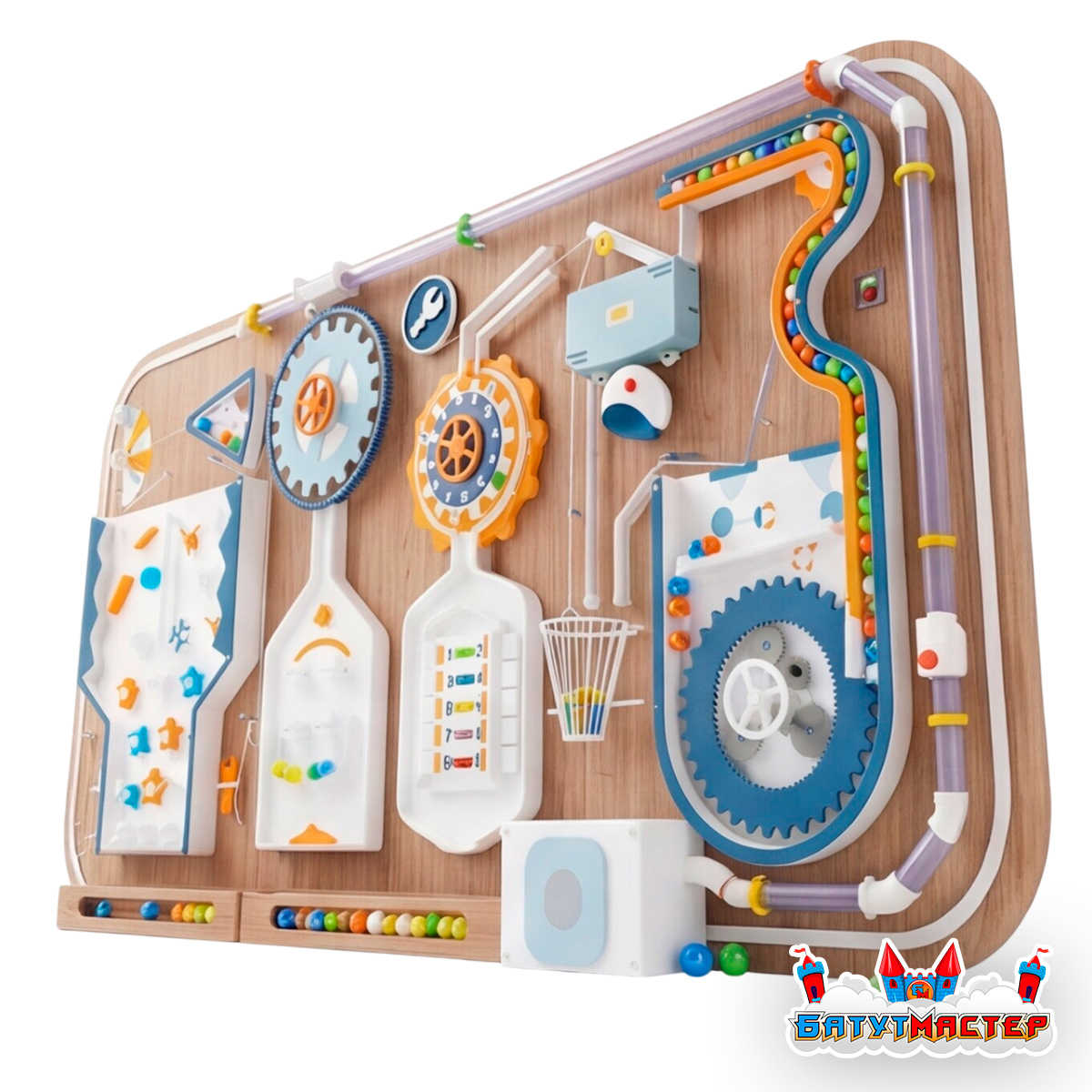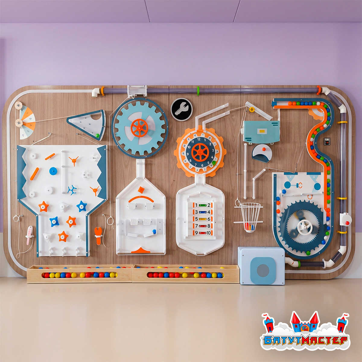 Представьте стену, которая оживает от каждого прикосновения детских рук. Шарики мчатся по прозрачным трубкам, шестерёнки приходят в движение одна за другой, а каждый рычаг открывает новый маршрут для разноцветных сфер. Интерактивная стена «Техномаршрут» превращает обычное игровое пространство в настоящую лабораторию юного инженера, где физика становится увлекательным приключением.