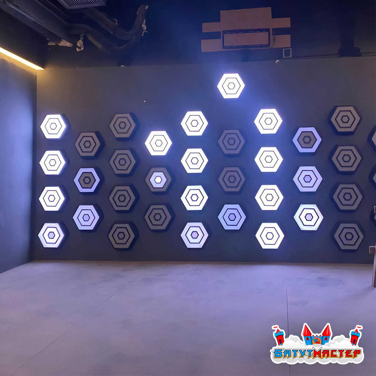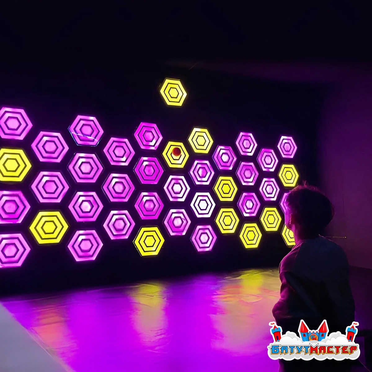 Представьте: тёмный зал озаряется десятками светящихся шестигранников, которые переливаются всеми цветами радуги — от глубокого пурпура до изумрудного свечения. Ребёнок берёт мяч, прицеливается и бросает — мишень вспыхивает, фиксируя точное попадание! Это не фантастический фильм, это интерактивная стена «Неосоты» — аттракцион нового поколения, который превращает обычный детский центр в футуристическую игровую арену.