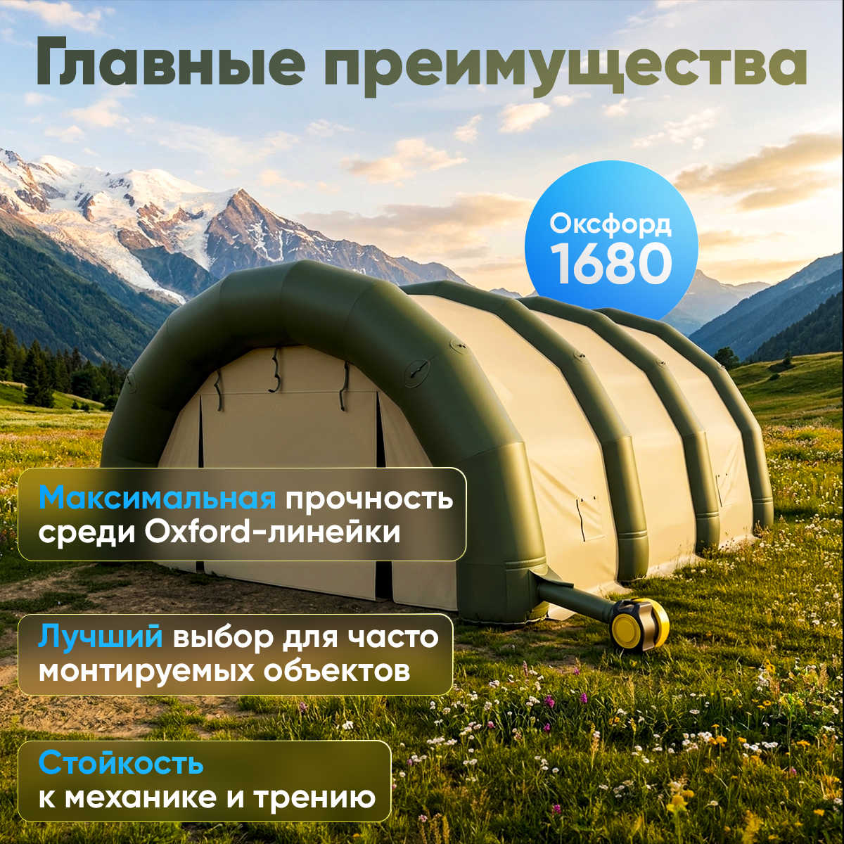 Оболочка ангара изготовлена из ткани Oxford 1680 — это плотная многоволоконная ткань с армированной структурой переплетения.