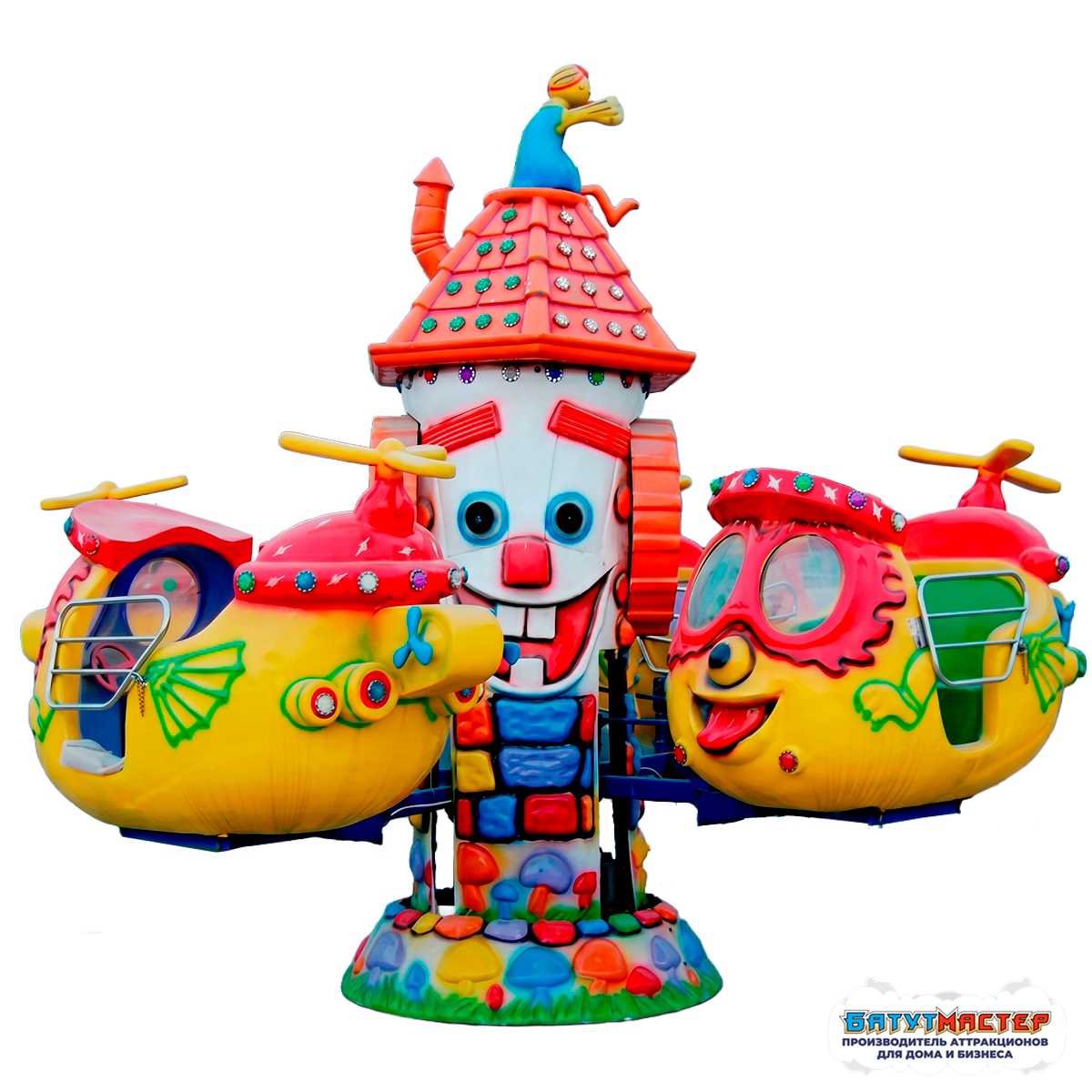 В самом сердце площадки поднимается волшебная мельница, а рядом с ней — красочные кабины, готовые отправить гостей в лёгкий полёт. «Мельница Чудес» превращает обычную территорию в центр притяжения семейного отдыха. Яркие цвета, дружелюбные формы и плавное движение создают атмосферу радости, где каждый ребёнок чувствует себя героем собственной истории ✨