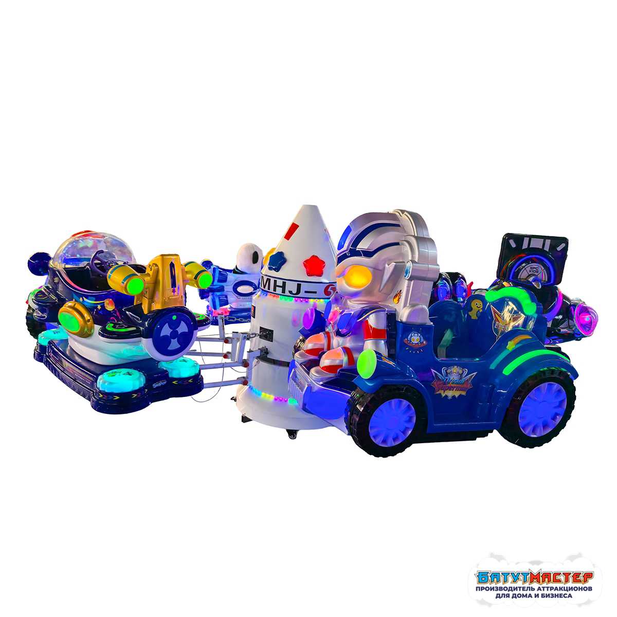 Карусель с подъёмом кабин «Роботы будущего» — это не просто развлечение, это целый космический мир, который разворачивается прямо перед глазами. Роботы-пилоты смотрят на посетителей светящимися глазами, кабины парят в воздухе под пульсирующие огни, а музыкальное сопровождение превращает каждую поездку в маленькое приключение. Этот аттракцион создан для того, чтобы удерживать внимание — и детей, и взрослых — с первой же секунды.