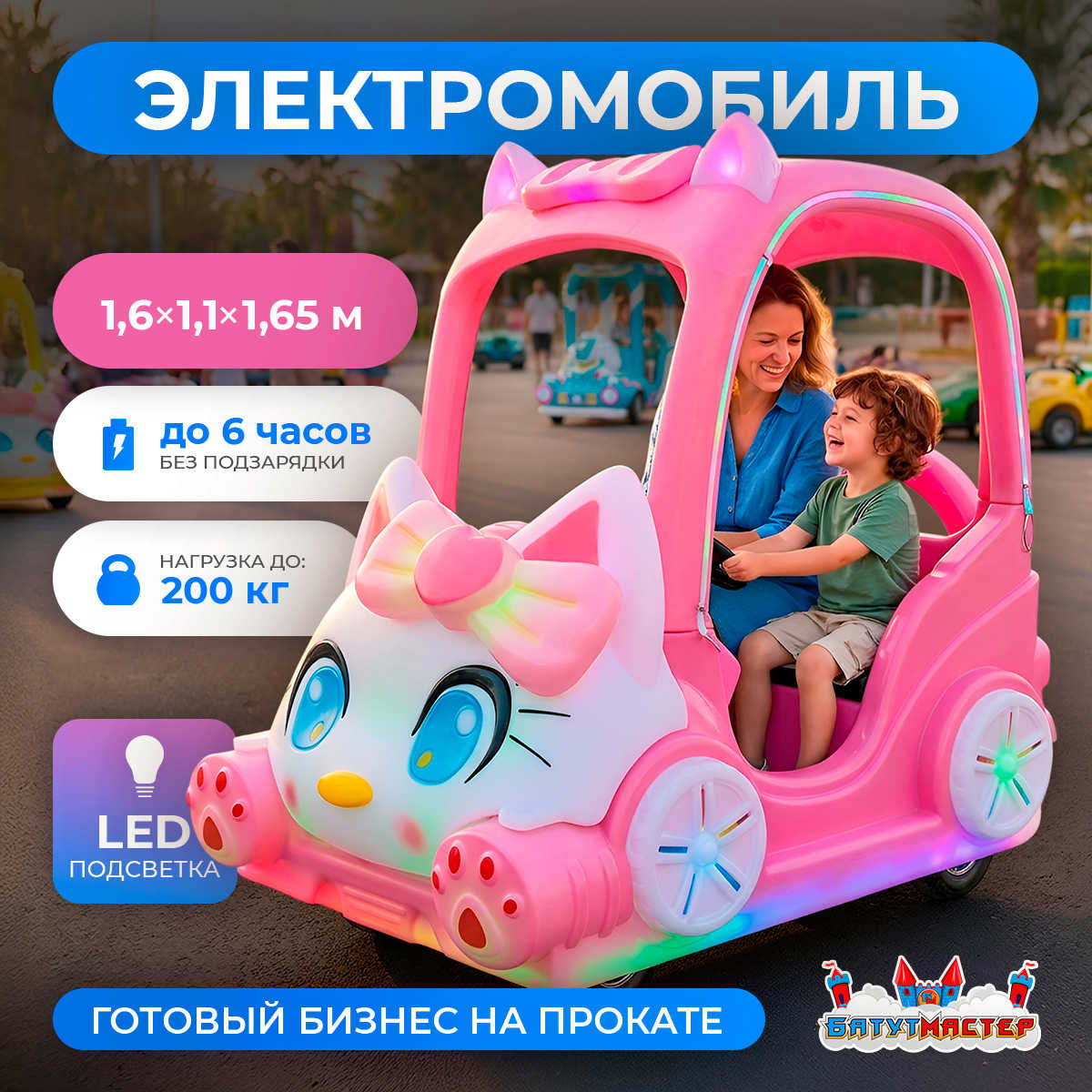 Было бы скучно, если бы все аттракционы выглядели одинаково. Но «Котомобиль» — совсем другая история. Розовый, сияющий, с большими голубыми глазами и бантиком на крыше — он словно только что выехал из мультфильма прямо на дорожки вашего парка. Дети видят его издалека и уже тянут маму за руку: «Хочу вот на том!» Именно так начинается ваш бизнес — с одного взгляда, с одной улыбки, с одной поездки.