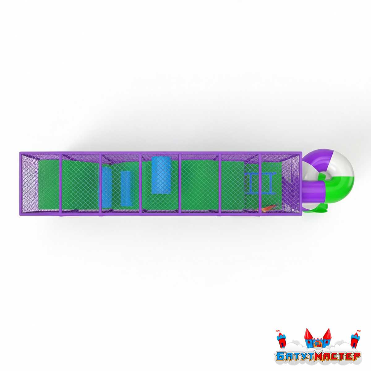 - Сетчатые стенки обеспечивают полный обзор — родители видят ребёнка с любой точки зала