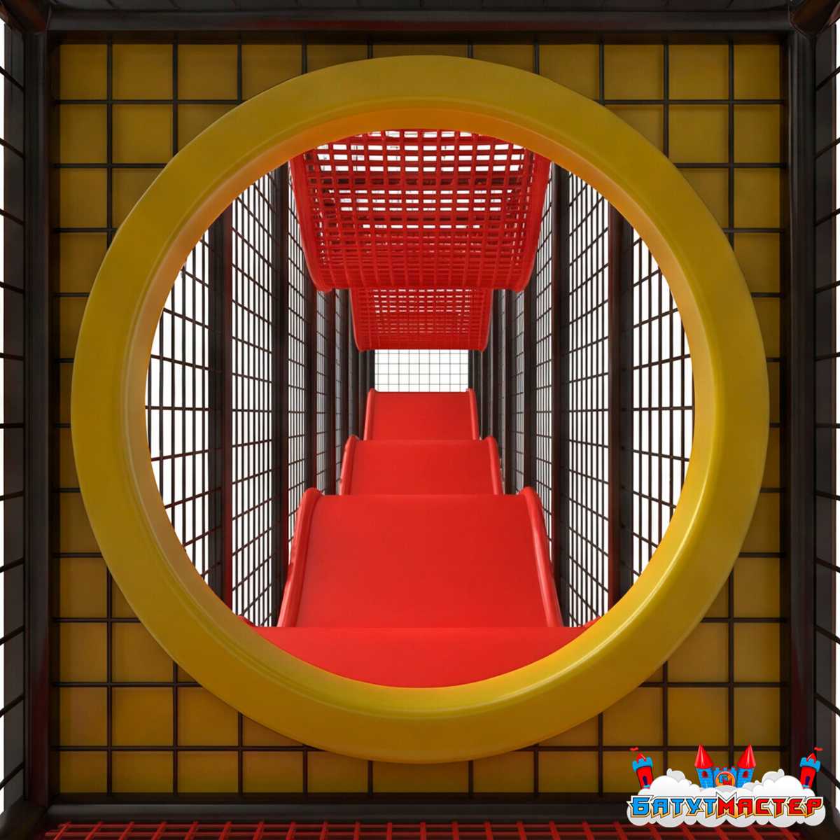 Открытая конструкция без крыши — это не просто дизайнерское решение. Она позволяет сотрудникам и родителям в любой момент видеть детей на всех уровнях, что существенно упрощает контроль и повышает безопасность.