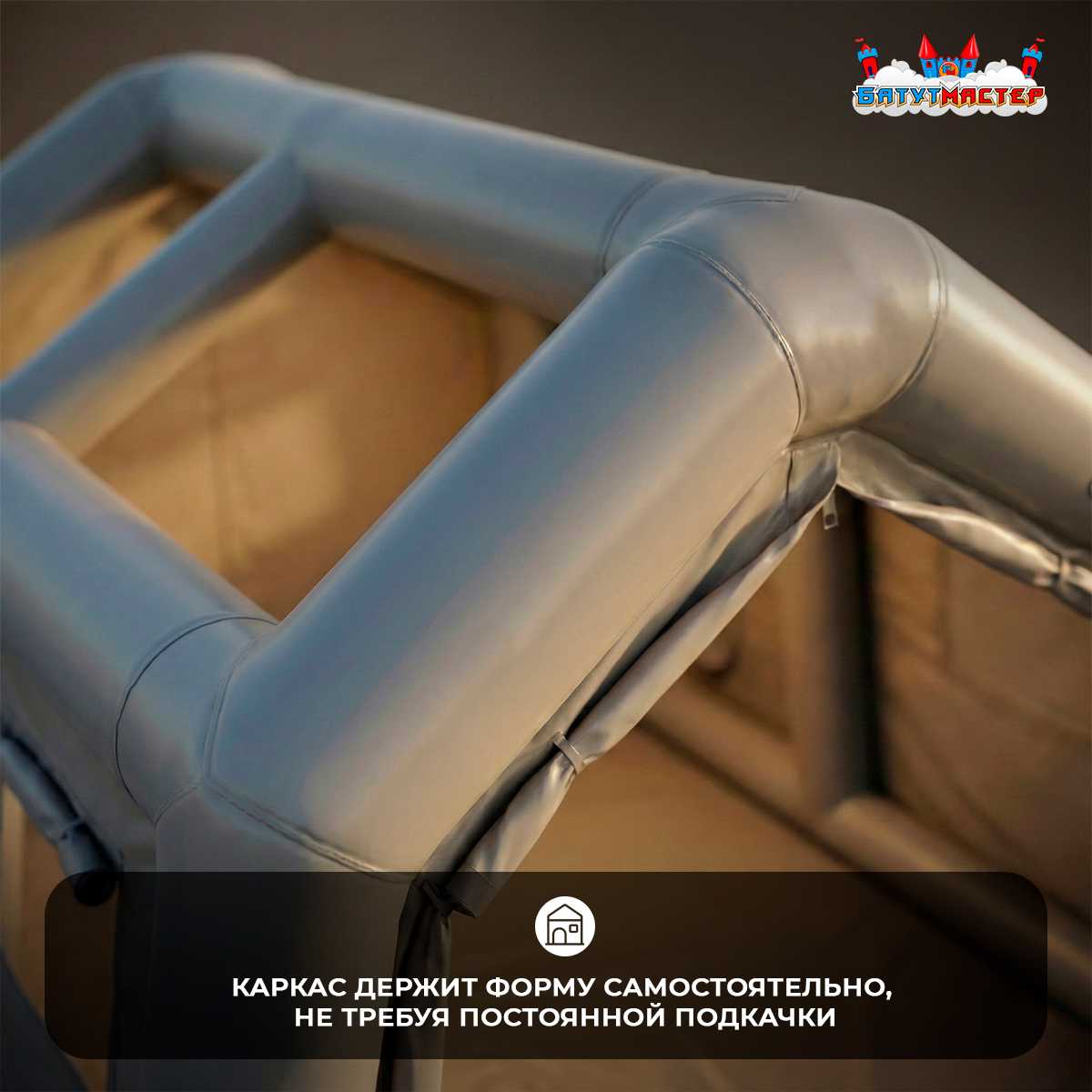 Основа конструкции — пневмокаркас: система надувных несущих элементов, которые после подачи воздуха формируют прочную пространственную раму. Главное преимущество — каркас держит форму самостоятельно и не требует постоянной подкачки. Никаких металлических стоек, никакого фундамента, никакой спецтехники.