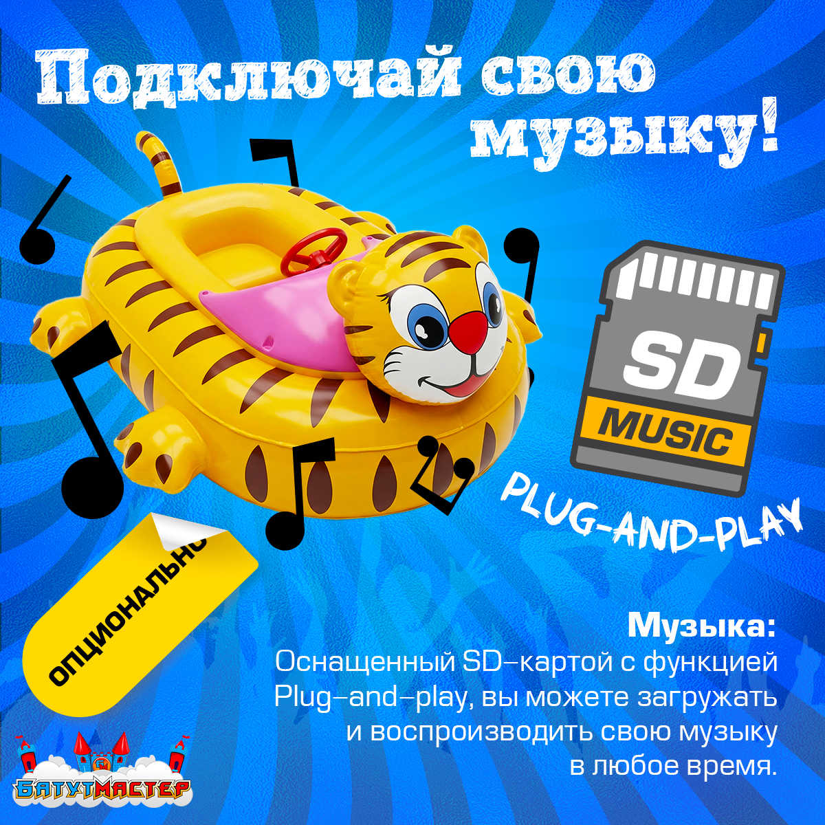 Музыкальная система с SD-картой — Plug-and-Play: загрузите любой плейлист и создайте праздничную атмосферу прямо на воде.