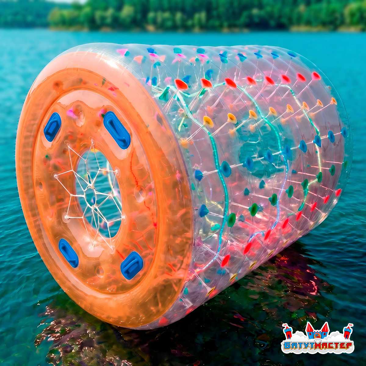 Уникальный формат развлечений: водный роллер — это надувной цилиндр, в котором пользователи бегут, как хомячки в колесе, передвигая конструкцию по воде.