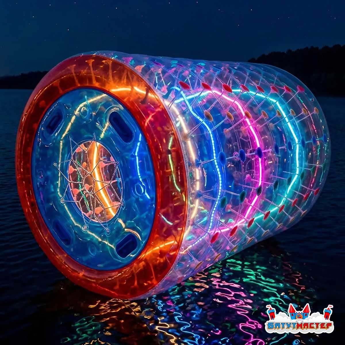 Представьте себе тёплую летнюю ночь, звёздное небо и водоём, по которому скользит живой шар разноцветного огня — оранжевого, синего, розового, бирюзового. Огни переливаются, дрожат в отражении на воде, и весь берег замирает, глядя на это зрелище. Вы — владелец базы отдыха или организатор водных развлечений. Что способно стать главным событием вечера на вашем объекте, само себя рекламировать и генерировать очередь из желающих прокатиться? Ответ прост — водный роллер «Световое шоу». Это не просто аттракцион, это живое представление прямо на воде, которое одинаково завораживает и детей, и взрослых.