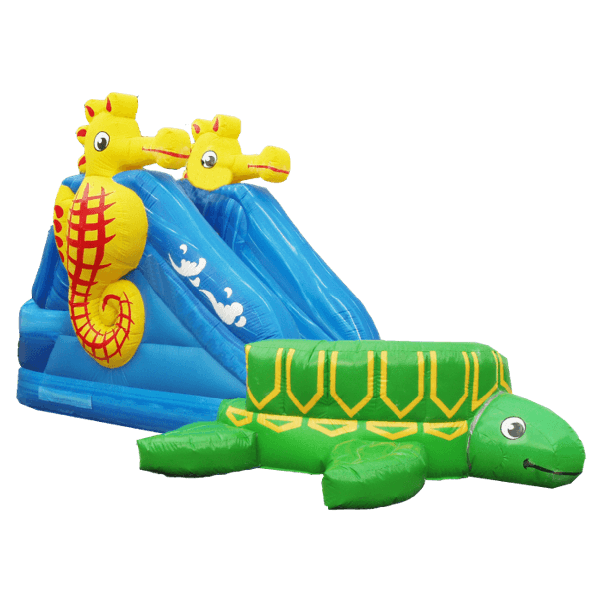 Аквапарк «Весёлая Черепашка» создан для того, чтобы привлекать внимание и дарить радость детям. Яркая зелёная черепаха с весёлым выражением лица и жёлтые морские коньки превращают аттракцион в настоящий морской островок. Такой дизайн сразу выделяется среди других развлечений и создаёт атмосферу летнего праздника.