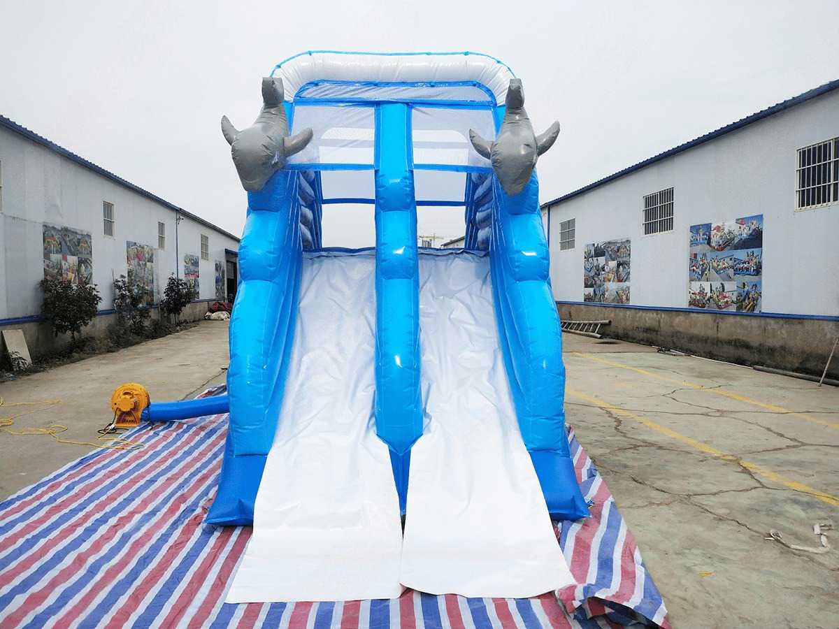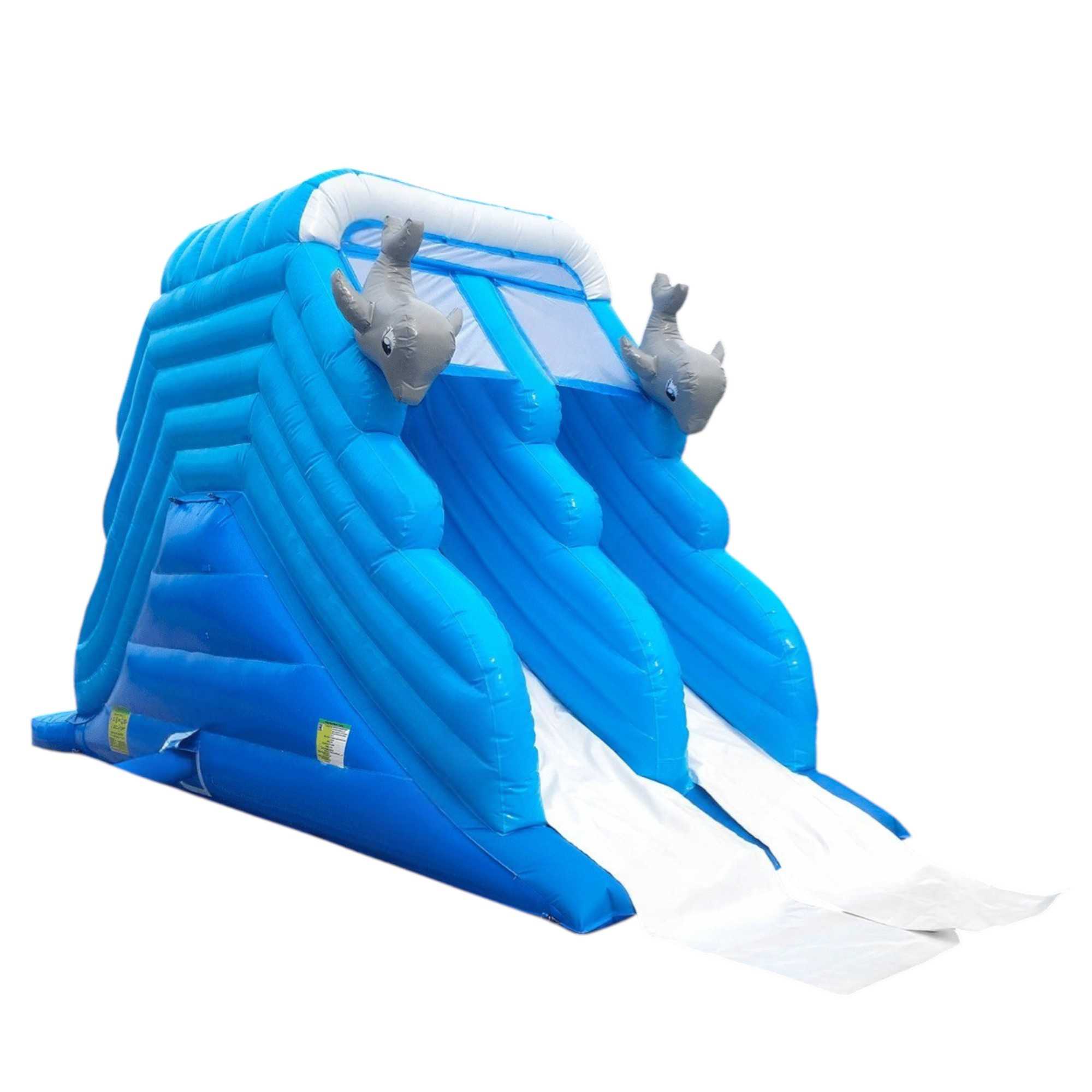 «Дельфинчики» — это не просто водная горка. Это целый мир ярких эмоций, веселого смеха и детского восторга! Два ската позволяют одновременно кататься нескольким детям, а забавные надувные дельфинчики создают атмосферу подводного веселья. Конструкция идеально подходит как для небольших развлекательных площадок, так и для масштабных комплексов — от набережных и городских парков до частных курортов и торговых центров.