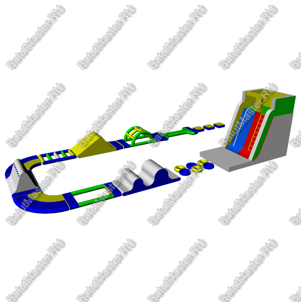Особенность его состоит в том, что устанавливается он прямо на воду. Каждый модуль здесь мягкий и может ставиться в любой последовательности, так, что можно создать свое эксклюзивное решение для аттракциона на воде. Коммерческий аквапарк может служить полноценной полосой препятствий, а также просто как водное развлечение. Такой формат аквапарка очень популярен, так как является функциональным, удобно хранится и полностью разбирается. Предназначен для бизнеса.