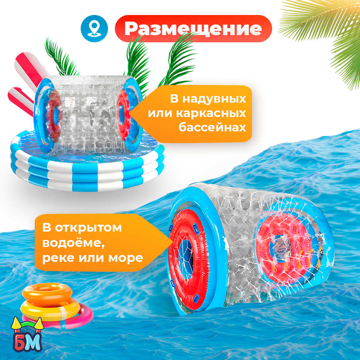 «Турбо 2» — это не просто водный аттракцион, а настоящий магнит для клиентов. Этот цилиндр из усиленного прозрачного ПВХ длиной 2,4 м и диаметром 2,2 м легко размещает двух человек, превращая процесс плавания в увлекательное приключение. Внутри — комфортное пространство, с обеих сторон — удобные отверстия для входа и выхода. Благодаря системе строп и ручек, управлять роллером просто и безопасно, а прозрачные сегменты создают впечатление полета над водой.