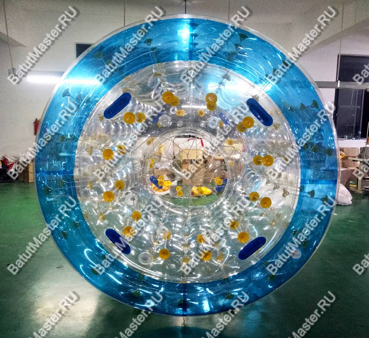 "Фонарь" — это не просто водный аттракцион, а настоящий магнит для клиентов. Этот цилиндр из усиленного прозрачного ПВХ длиной 2,4 м и диаметром 2,2 м легко размещает двух человек, превращая процесс плавания в увлекательное приключение. Внутри — комфортное пространство, с обеих сторон — удобные отверстия для входа и выхода.