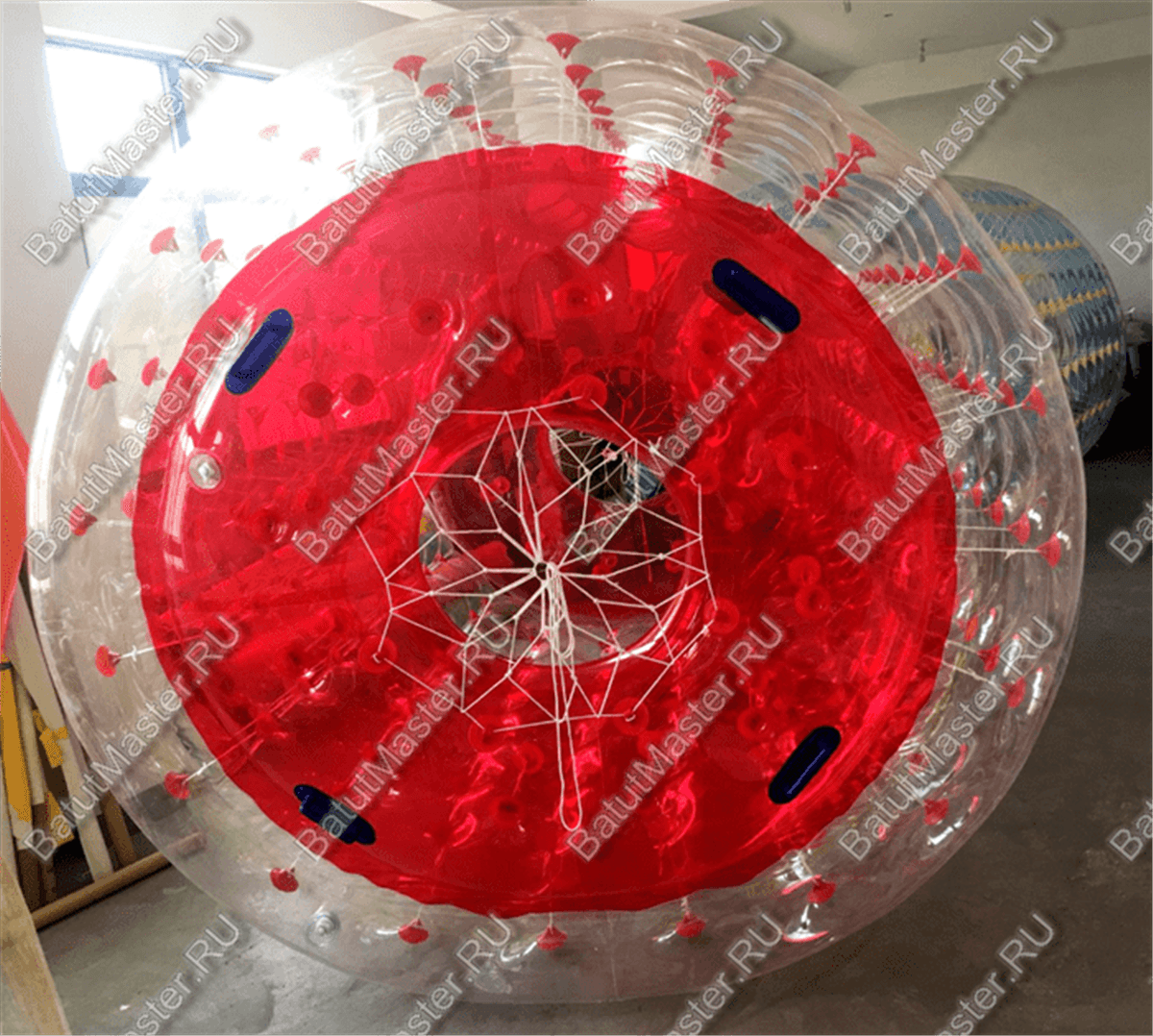 "Прозрачно-красный" — это не просто водный аттракцион, а настоящий магнит для клиентов. Этот цилиндр из усиленного прозрачного ПВХ длиной 2,4 м и диаметром 2,2 м легко размещает двух человек, превращая процесс плавания в увлекательное приключение. Внутри — комфортное пространство, с обеих сторон — удобные отверстия для входа и выхода.