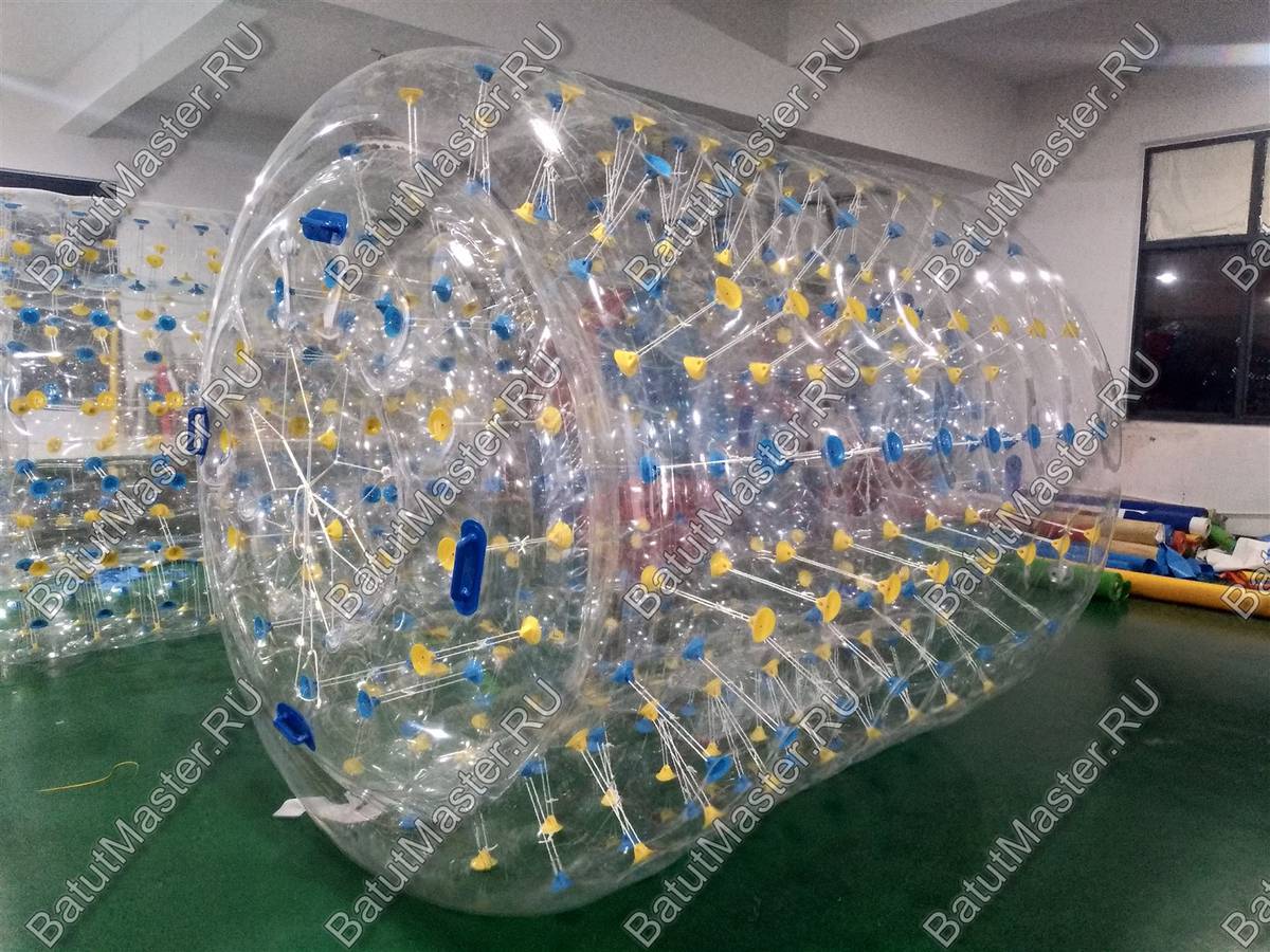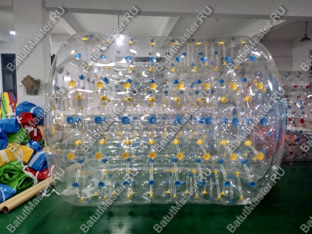 "Прозрачный с желто-синими держателями" — это не просто водный аттракцион, а настоящий магнит для клиентов. Этот цилиндр из усиленного прозрачного ПВХ длиной 2,4 м и диаметром 2,2 м легко размещает двух человек, превращая процесс плавания в увлекательное приключение. Внутри — комфортное пространство, с обеих сторон — удобные отверстия для входа и выхода.