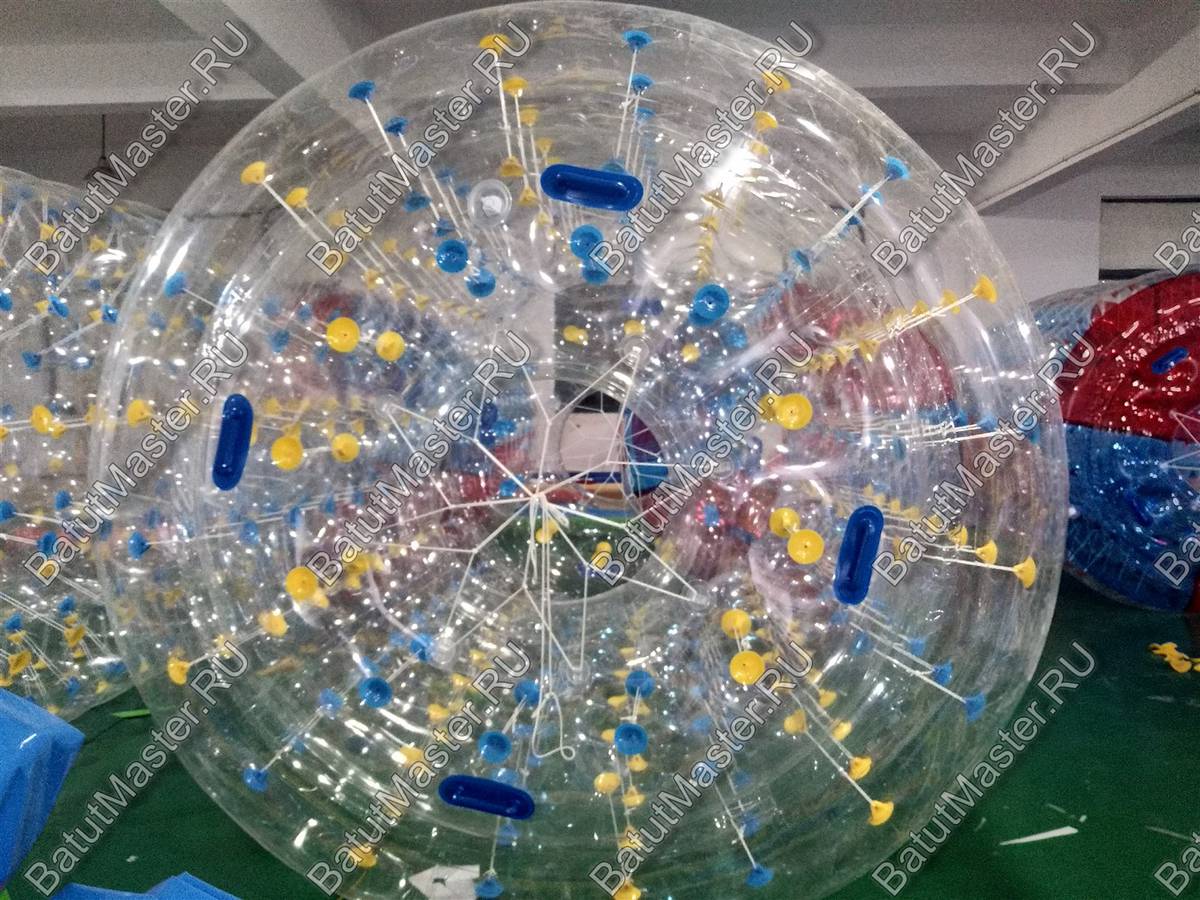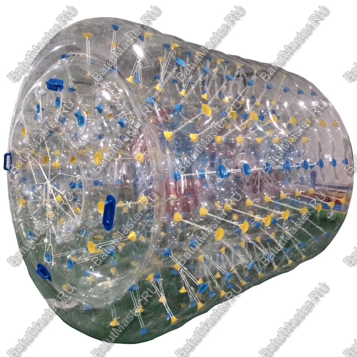 Это уникальный формат развлечений: надувной цилиндр из усиленного прозрачного ТПУ длиной 2,4 м и диаметром 2,2 м. Внутри легко размещаются два человека, которые бегут и вращают роллер по воде, словно хомячки в колесе! Такая конструкция дарит море смеха и драйва, а за счёт ярких жёлто-синих акцентов ваш аттракцион будет заметен издалека — отличный способ выделиться среди конкурентов.