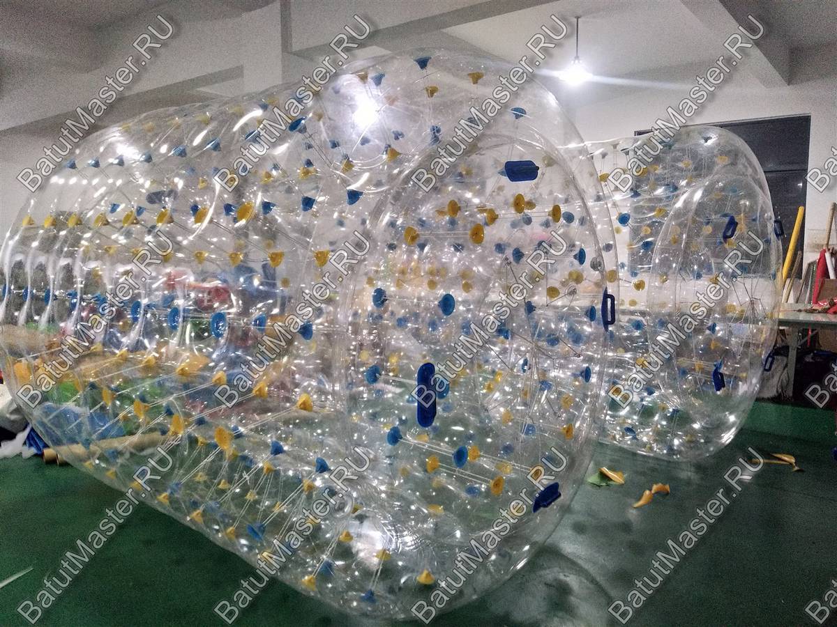 Это уникальный формат развлечений: надувной цилиндр из усиленного прозрачного ТПУ длиной 2,6 м и диаметром 2,2 м. Внутри легко размещаются два человека, которые бегут и вращают роллер по воде, словно хомячки в колесе! Такая конструкция дарит море смеха и драйва, а за счёт ярких акцентов (красный и зелёный элементы) ваш аттракцион будет заметен издалека — отличный способ выделиться среди конкурентов.