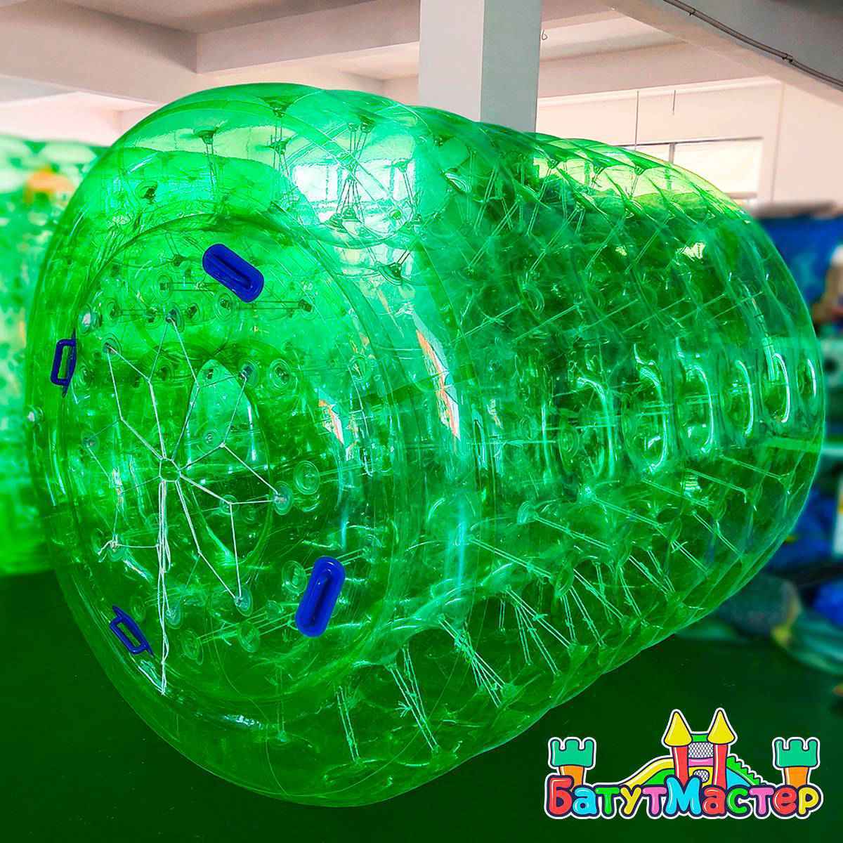 Водный роллер "Зелёный" — это надувной аква-аттракцион в форме прозрачного зелёного цилиндра, выполненный из прочного ПВХ, специально предназначенный для активного отдыха на воде. Он позволяет одному или двум участникам буквально "бежать" по поверхности воды внутри конструкции, словно в гигантском колесе для хомяка. Благодаря этому создаётся уникальный формат развлечения, вызывающий бурю восторга как у детей, так и у взрослых.