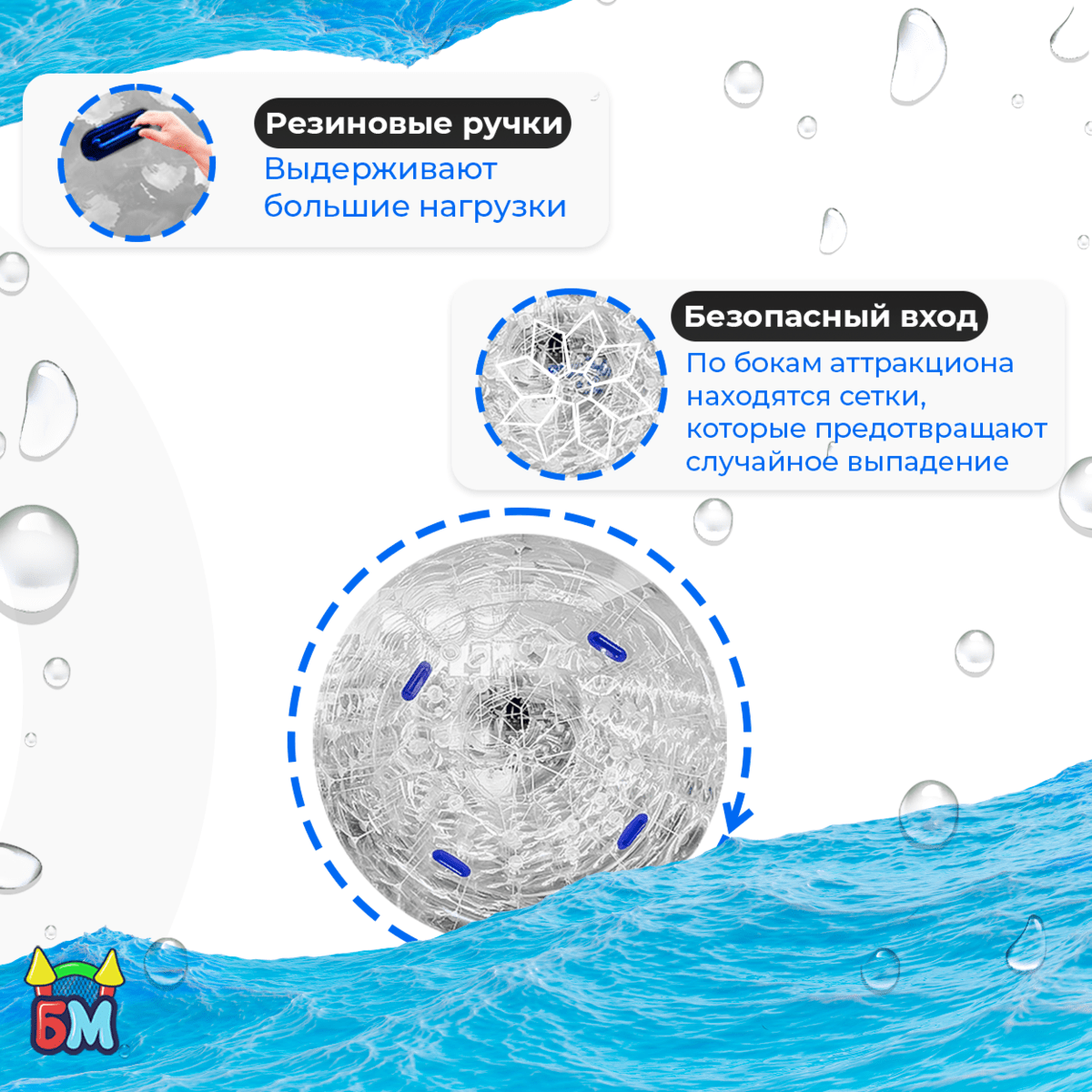 Вопрос безопасности стоит на первом месте! Водный роллер «Прозрачный» разработан с учётом всех современных требований.