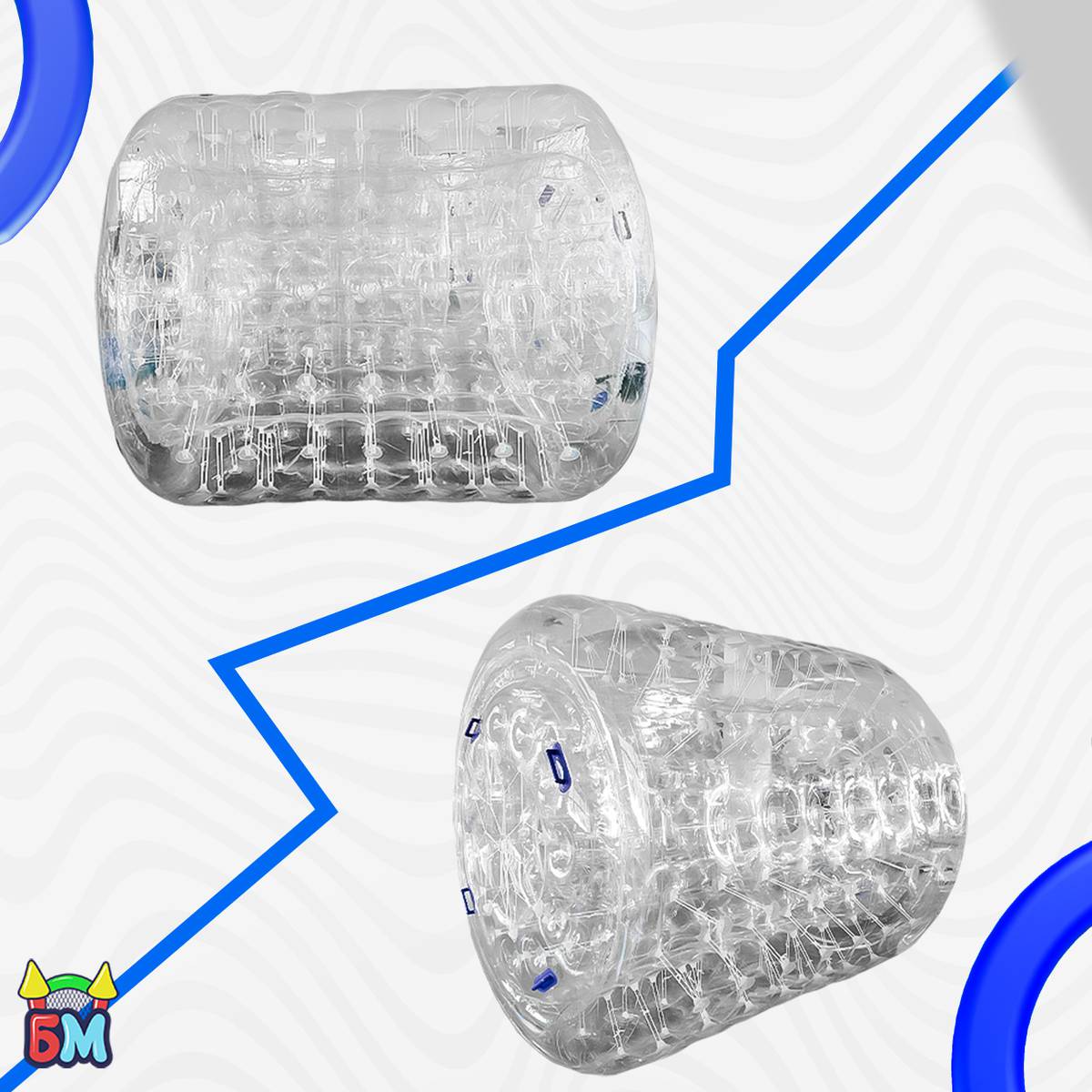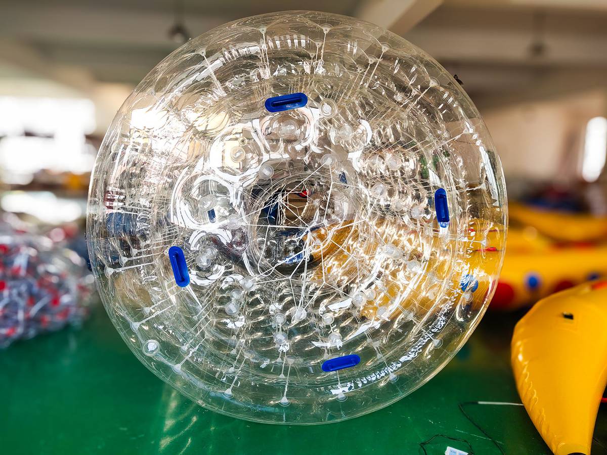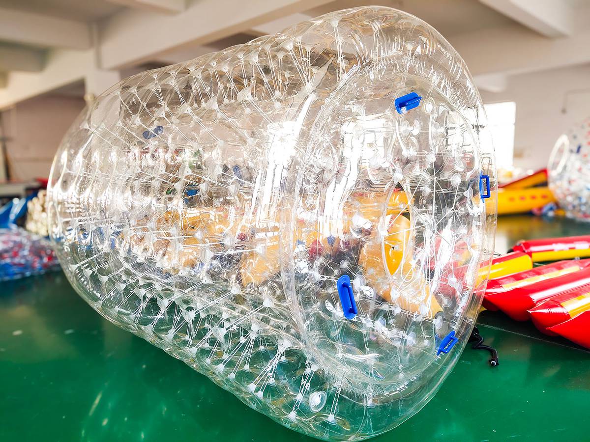 Это уникальный формат развлечений: надувной цилиндр из усиленного прозрачного ТПУ длиной 2,4 м и диаметром 2,2 м. Внутри легко размещаются два человека, которые бегут и вращают роллер по воде, словно хомячки в колесе! Такая конструкция дарит море смеха и драйва, а за счёт ярких акцентов (красный и зелёный элементы) ваш аттракцион будет заметен издалека — отличный способ выделиться среди конкурентов.
