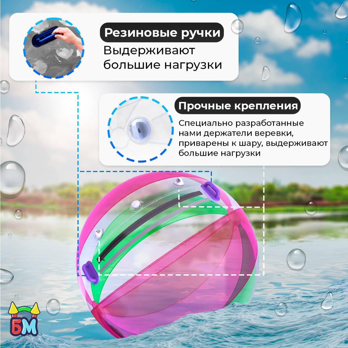 Это безопасный, зрелищный и необычный способ развлечения. В отличие от других водных аттракционов, шар позволяет оставаться сухим, находясь прямо на воде. Это делает его особенно популярным среди детей, подростков и родителей.