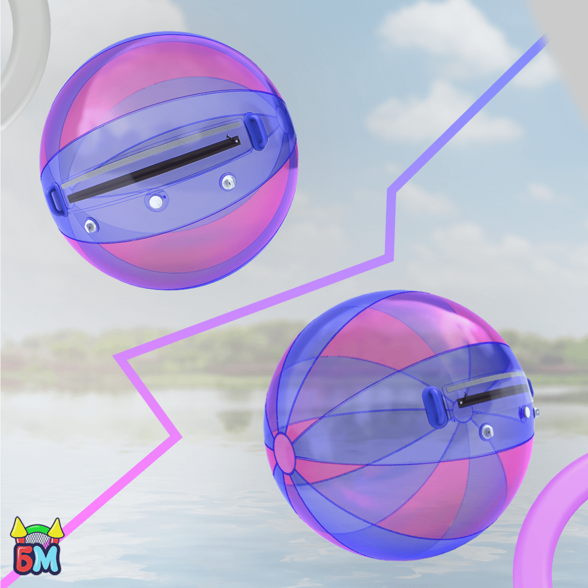 Порадуйте своих клиентов, удивите гостей, создайте яркую точку притяжения – закажите водный шар «Сине-розовый» прямо сейчас и откройте для себя бизнес, наполненный лёгкостью, цветом и весельем!