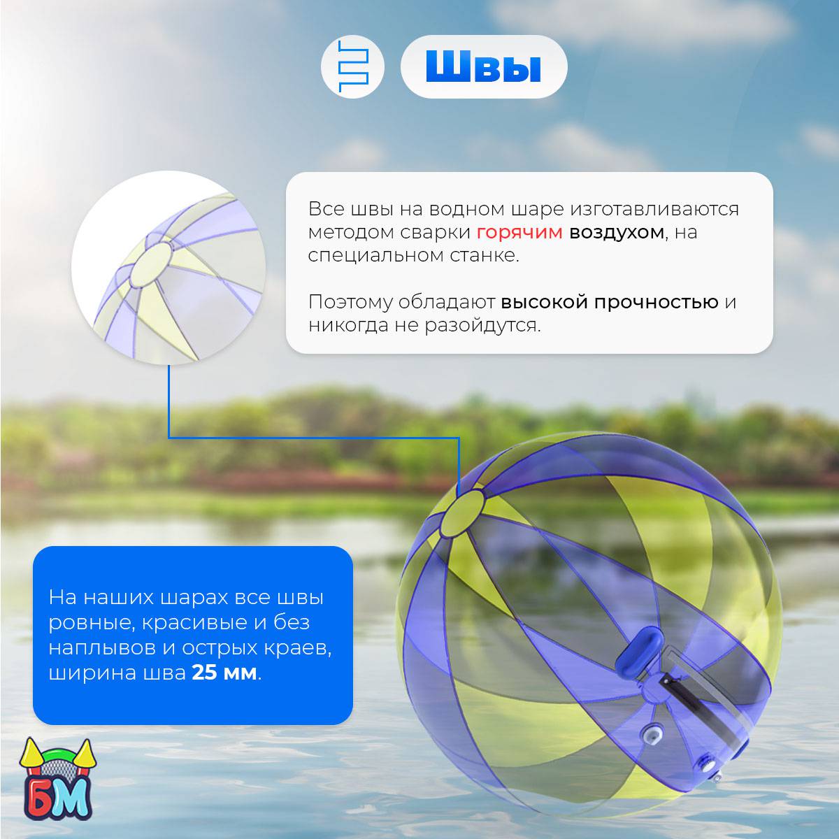 Это безопасный, зрелищный и необычный способ развлечения. В отличие от других водных аттракционов, шар позволяет оставаться сухим, находясь прямо на воде. Это делает его особенно популярным среди детей, подростков и родителей.
