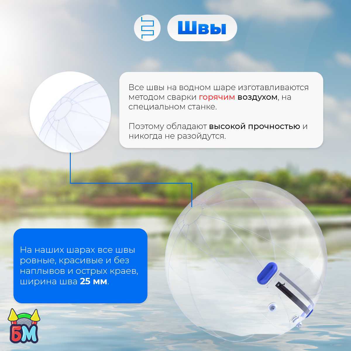 Это безопасный, зрелищный и необычный способ развлечения. В отличие от других водных аттракционов, шар позволяет оставаться сухим, находясь прямо на воде. Это делает его особенно популярным среди детей, подростков и родителей.