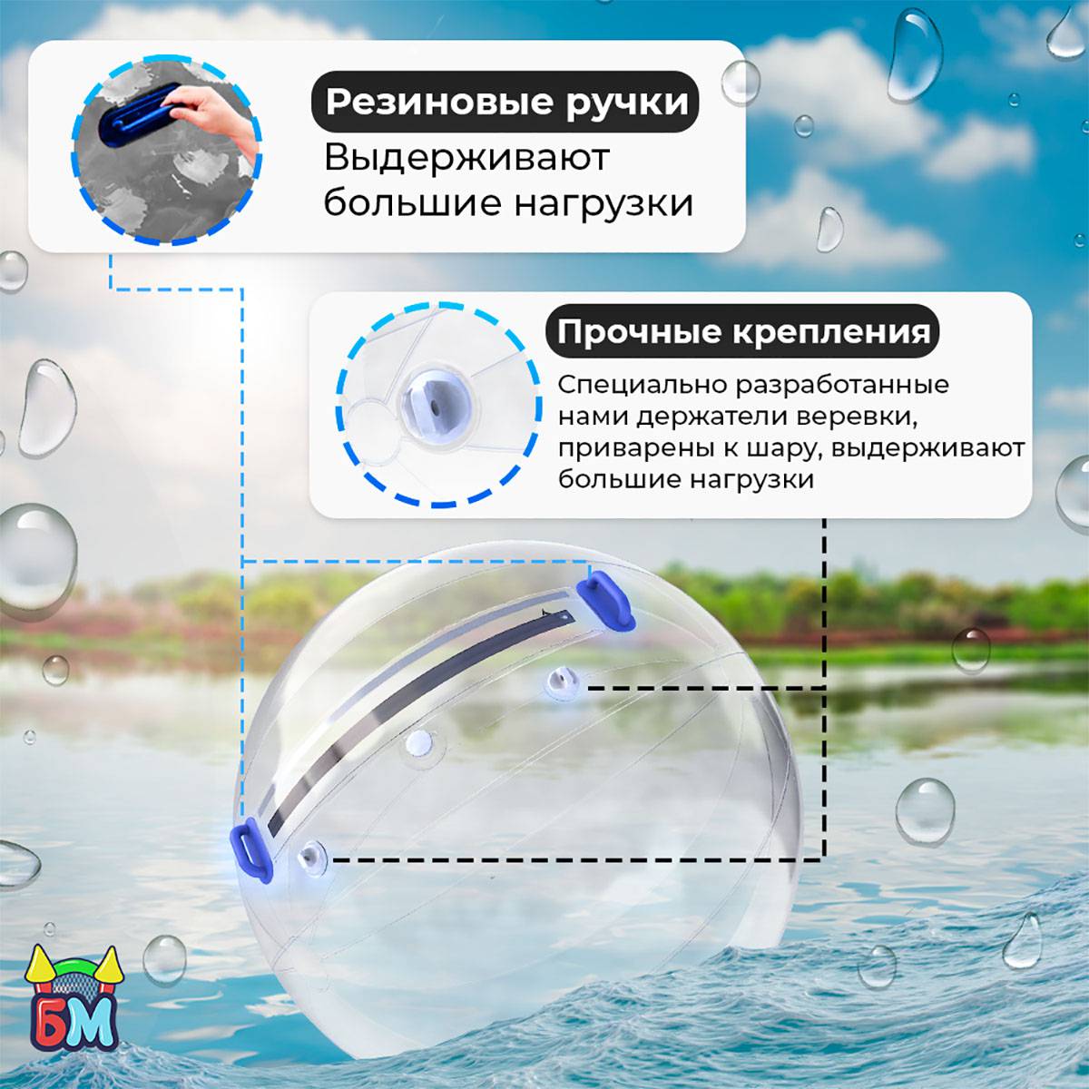 Это безопасный, зрелищный и необычный способ развлечения. В отличие от других водных аттракционов, шар позволяет оставаться сухим, находясь прямо на воде. Это делает его особенно популярным среди детей, подростков и родителей.