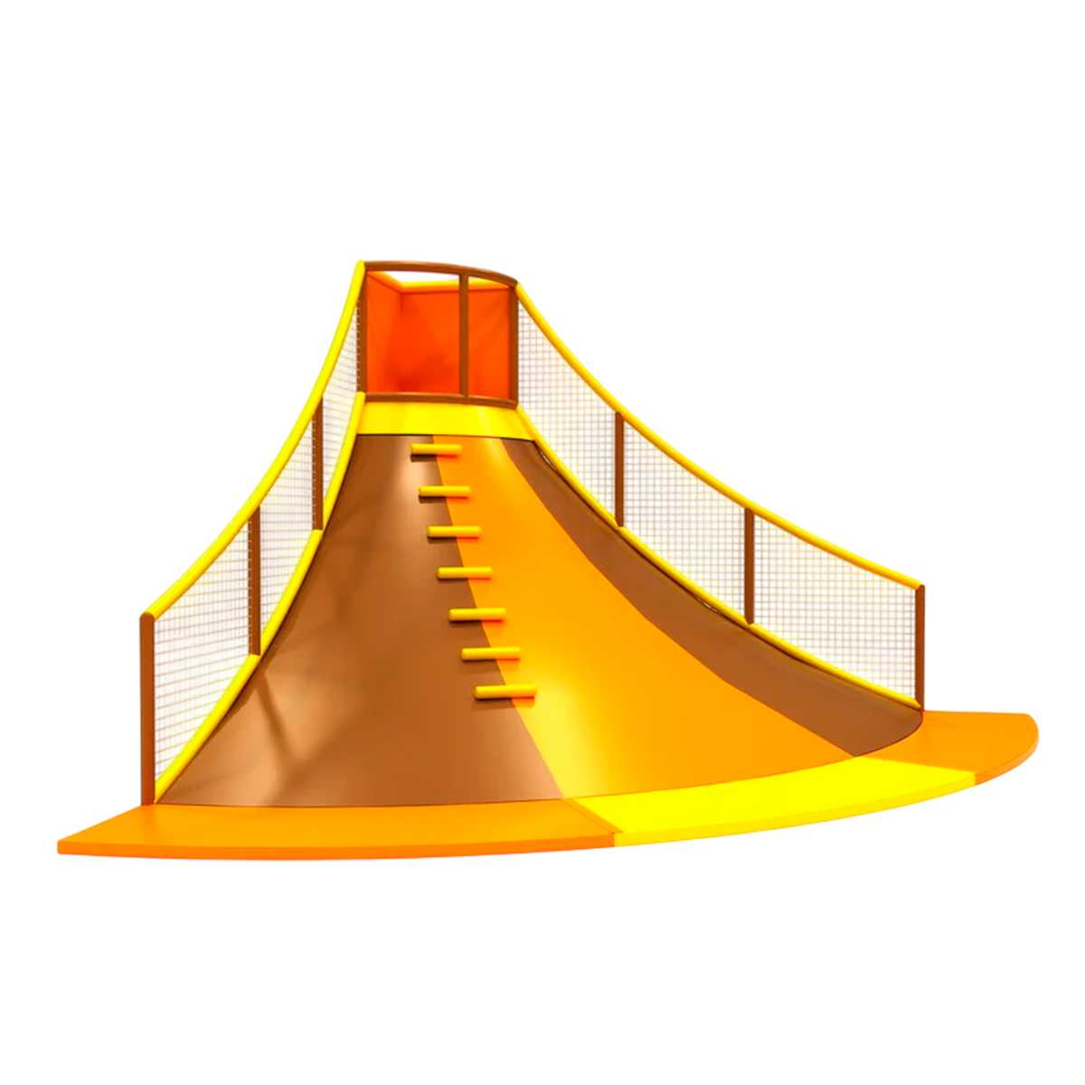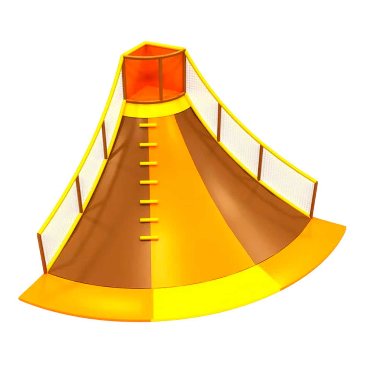 Аттракцион «Вулкано» — это не просто горка, а целый скалодром, предназначенный для активных игр. С размерами 5,3×5,3×3,8 м он идеально подходит для детских развлекательных комплексов, игровых комнат и спортивных площадок. Сочетание ярких оранжевых и желтых цветов делает аттракцион ярким центром внимания, а разнообразие зацепов и элементов для лазанья превращает его в настоящий вызов для детей.