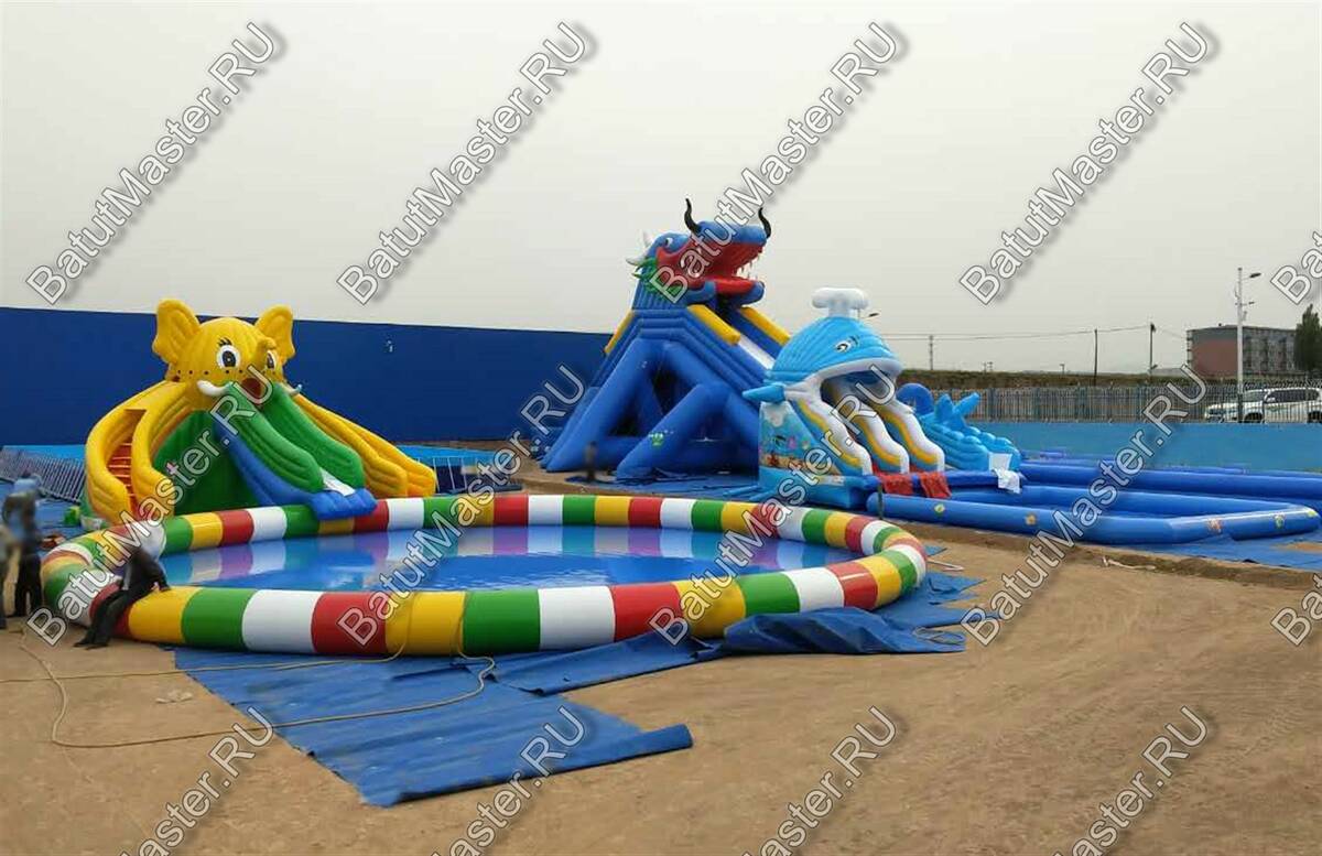 Огромный аквапарк 21x20x6 м с тематическими фигурами