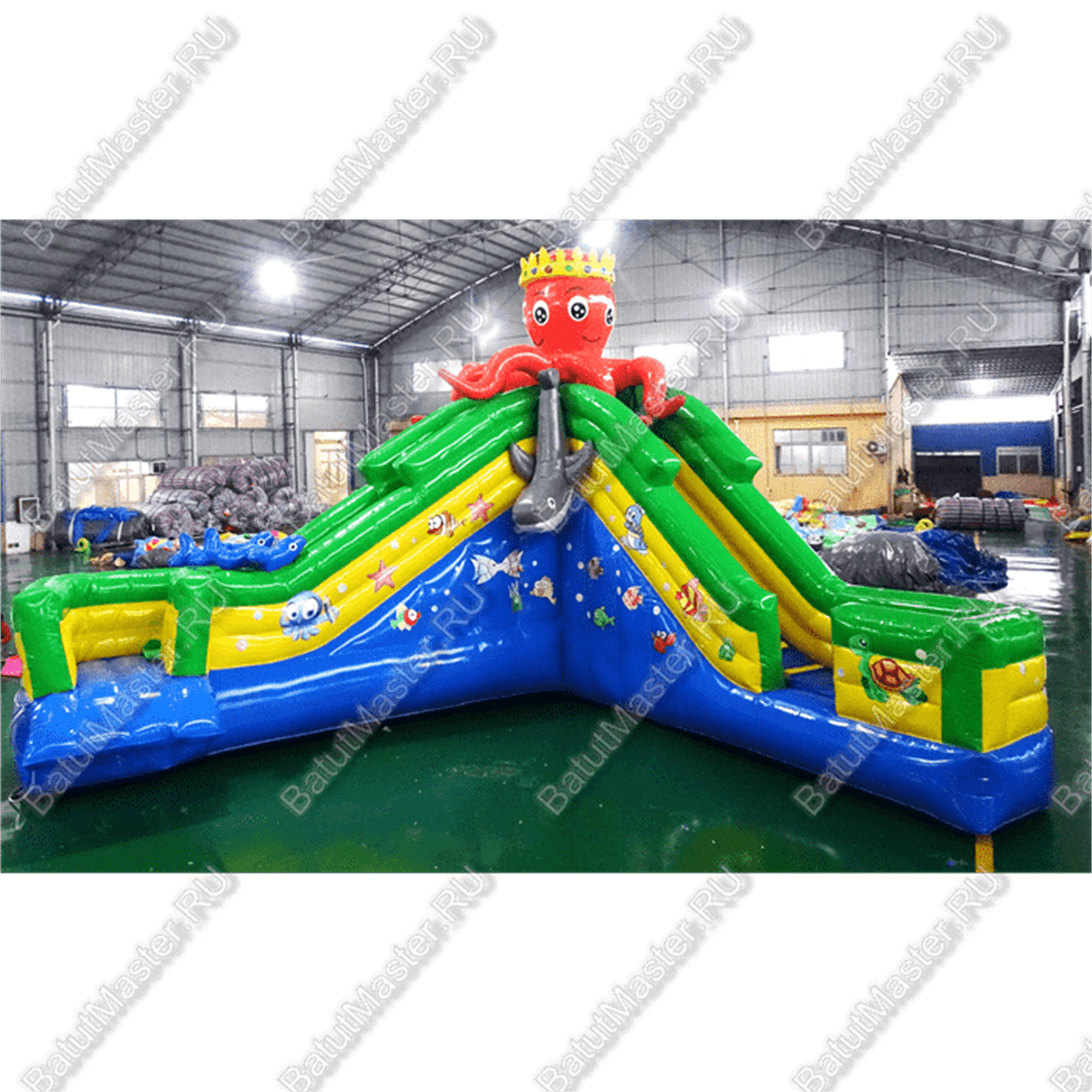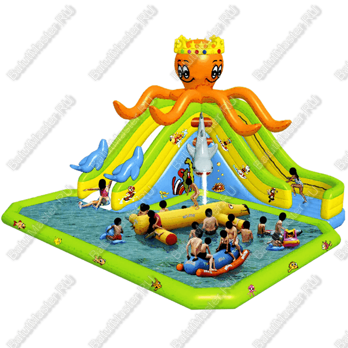 Коммерческий надувной аквапарк «Осьминог» 31x23x6 м — это масштабное развлекательное решение для бизнеса, ориентированное на детей и семейную аудиторию. С первого взгляда он покоряет своим дизайном: яркие цвета, морская тематика с элементами в виде осьминогов, голубых волн и зелёных островков создают ощущение настоящего морского приключения. Конструкция разработана с акцентом на безопасность, вместимость и визуальную привлекательность.