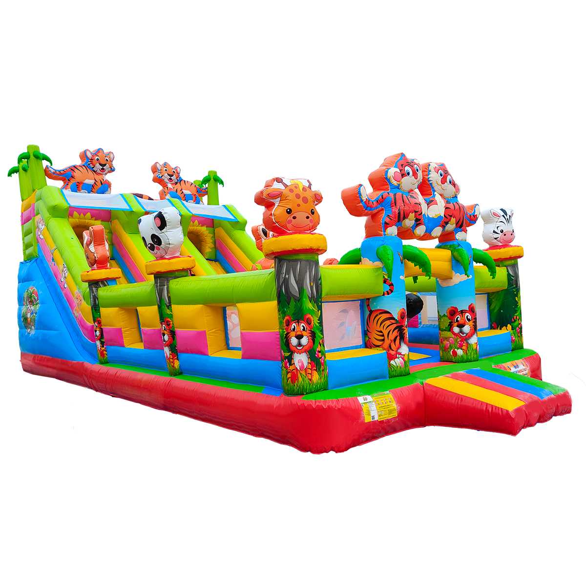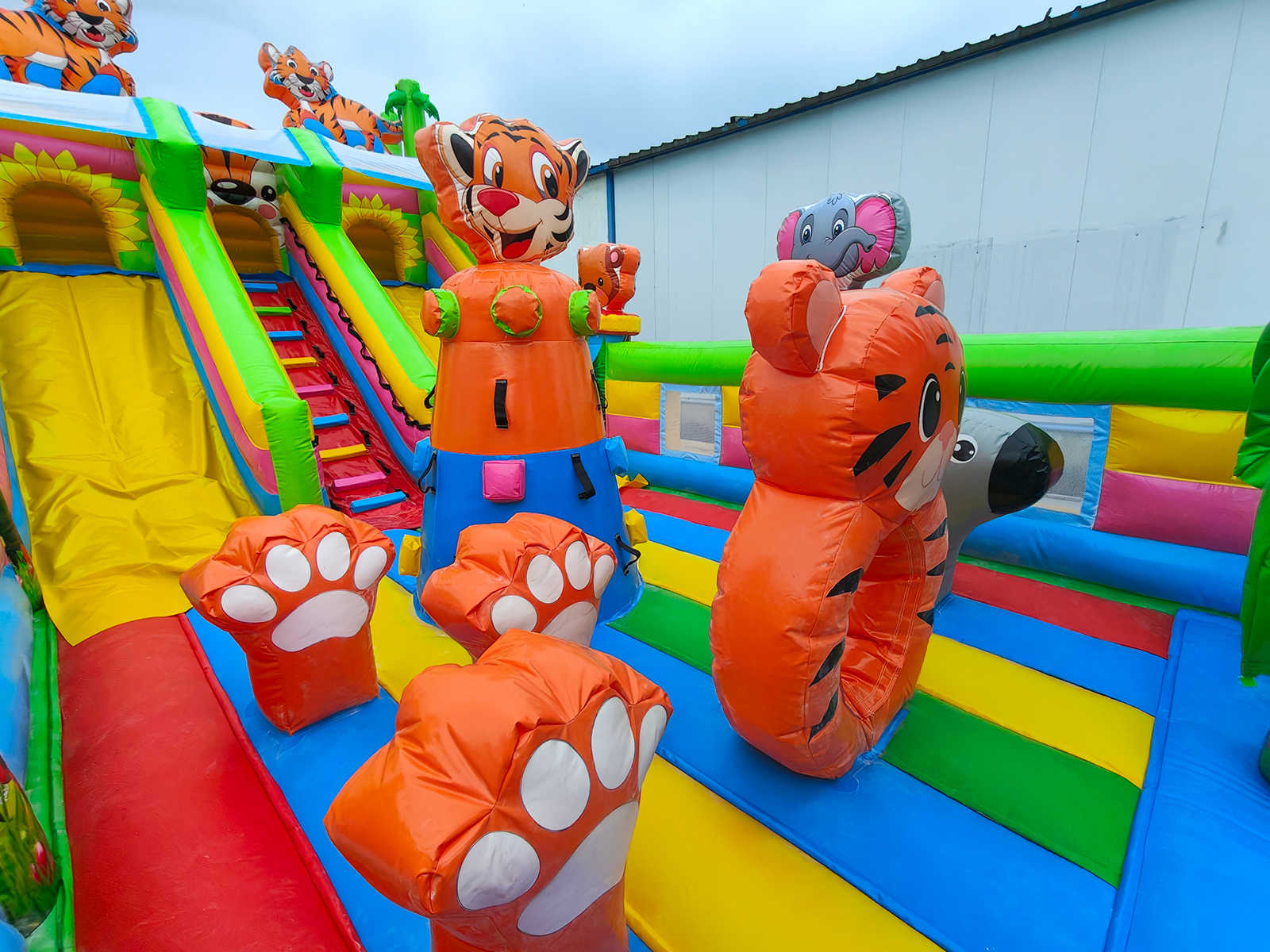 Этот надувной батут — не просто детская забава, а целая экосистема веселья и приключений, созданная специально для предпринимателей в сфере развлечений. Размер 10x5x5 метра позволяет разместить одновременно до 14 детей, а дизайн в стиле джунглей с тиграми, львами, зебрами и другими милыми животными моментально привлекает внимание.