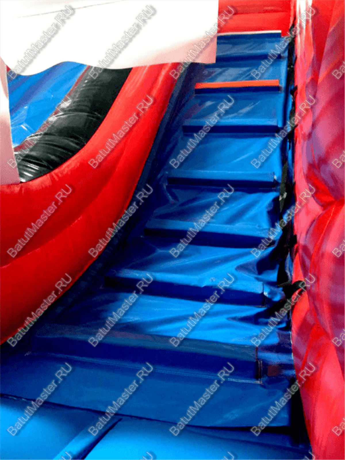 Батут для бизнеса выполнен из качественного ПВХ. В комплект входит насос, который устроен так, что при возникновении нештатной ситуации электричества, он выключается, что предотвращает от замыкания. В нем есть все необходимое для эксплуатации.