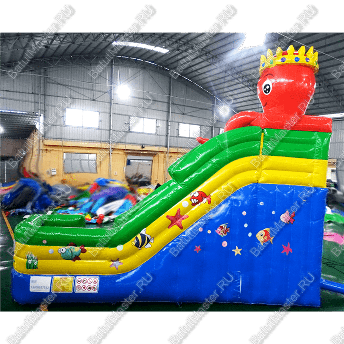 Надувной водный батут с бассейном «Король осьминогов» – это уникальный игровой комплекс, который объединяет в себе элементы классического батута, водной горки и просторного бассейна. Его красочный дизайн, выполненный в морской тематике с изображением рыбок и осьминогов, привлекает внимание и делает его центром любого водного развлечения.